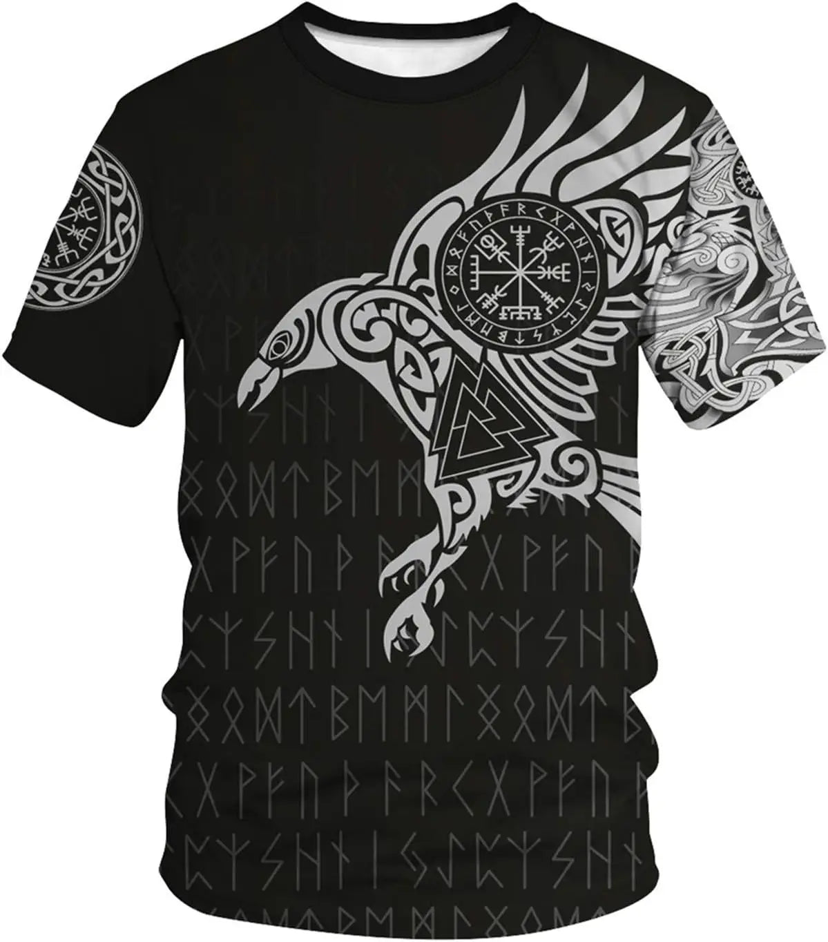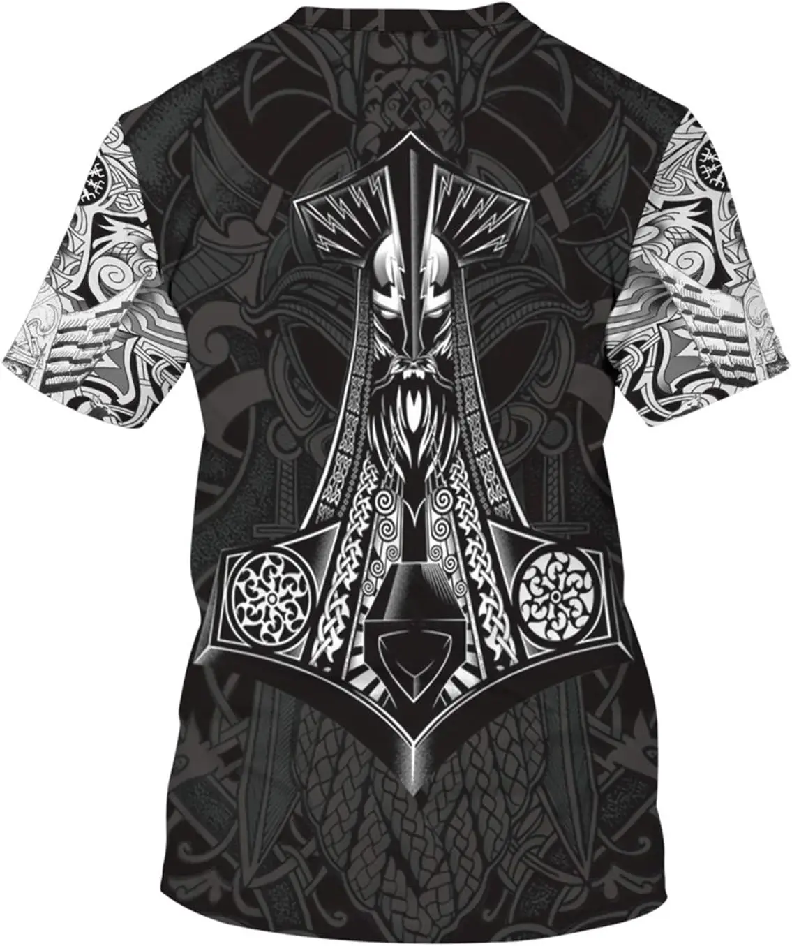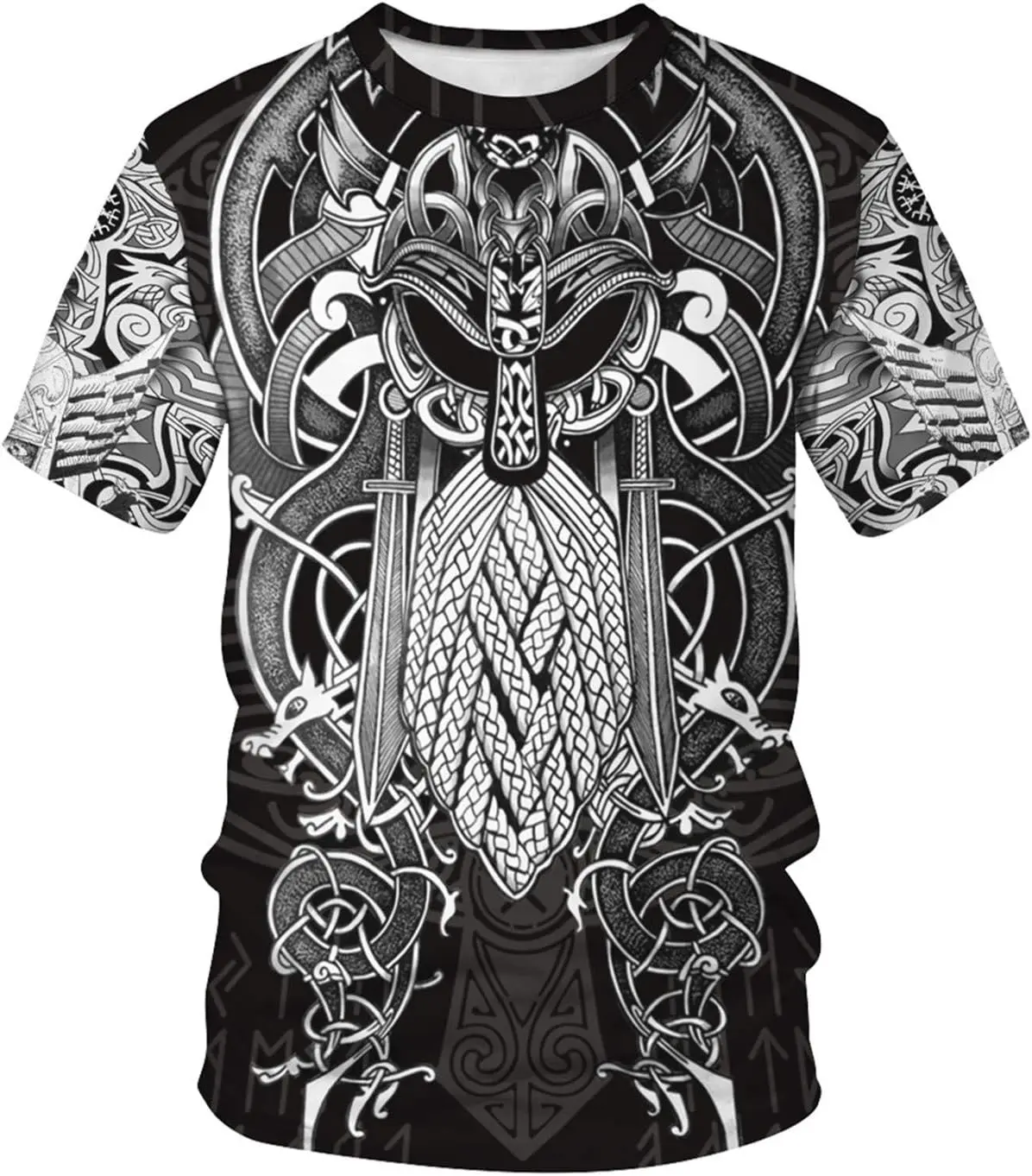 Men’s Vikings T-Shirt Tops – Novelty 3D Print Norse Mythology Pullover Tee