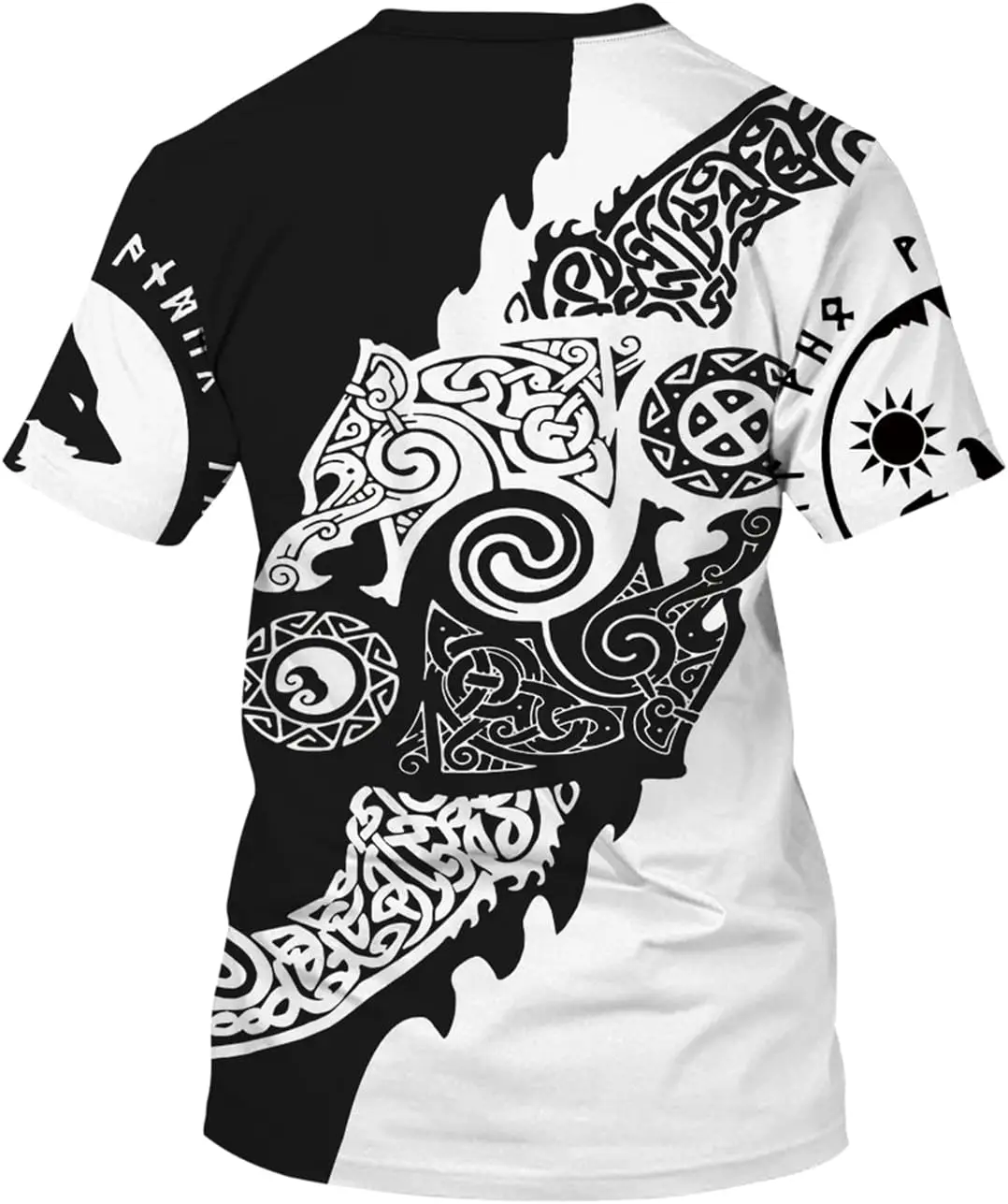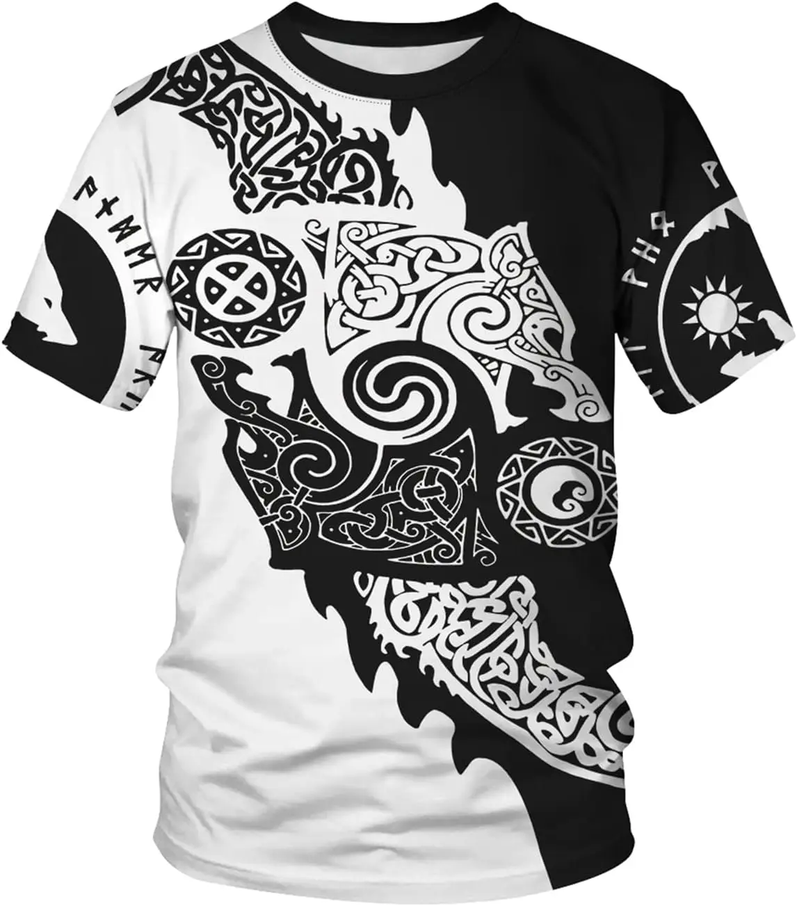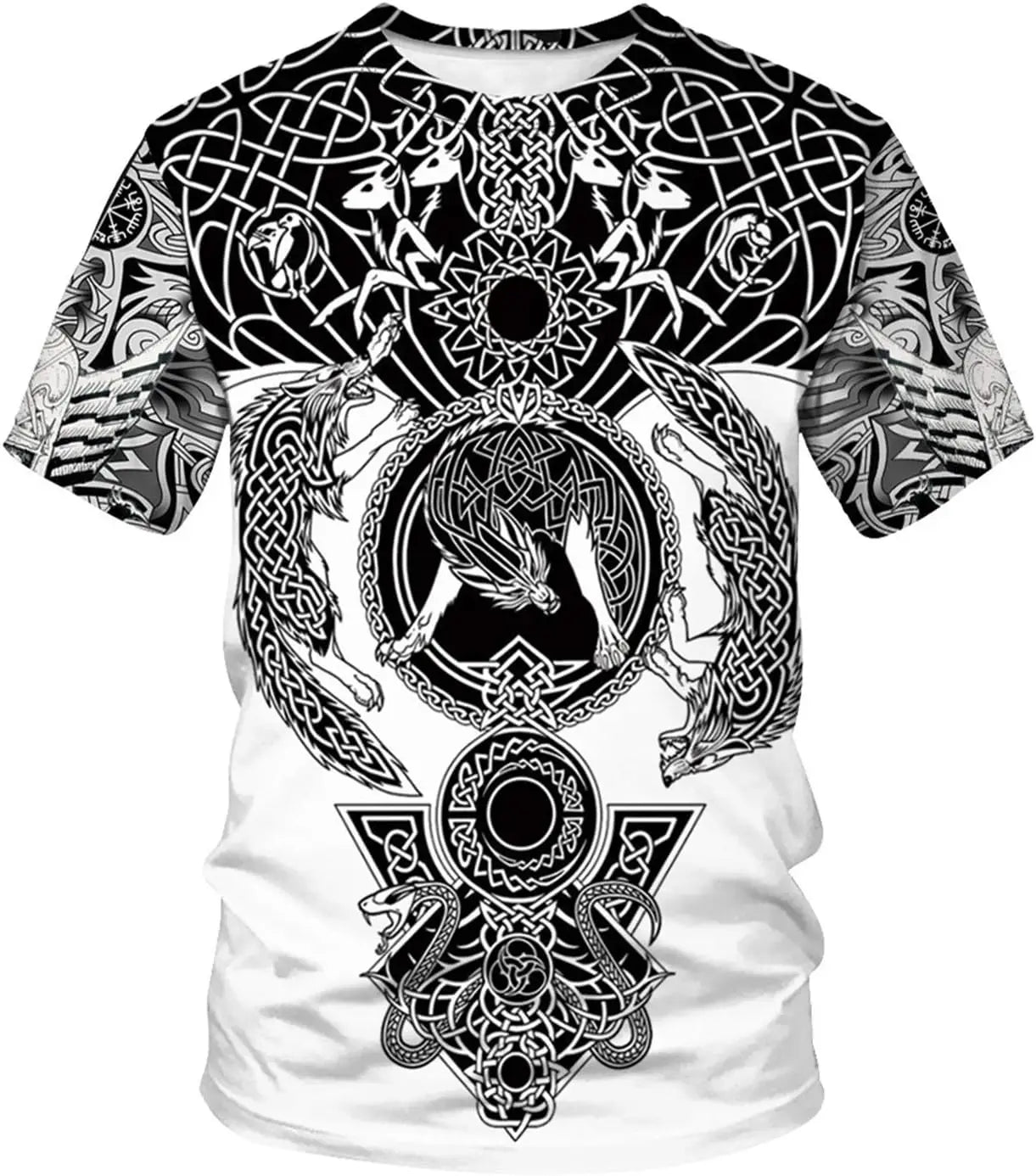 Men’s Vikings T-Shirt Tops – Novelty 3D Print Norse Mythology Pullover Tee