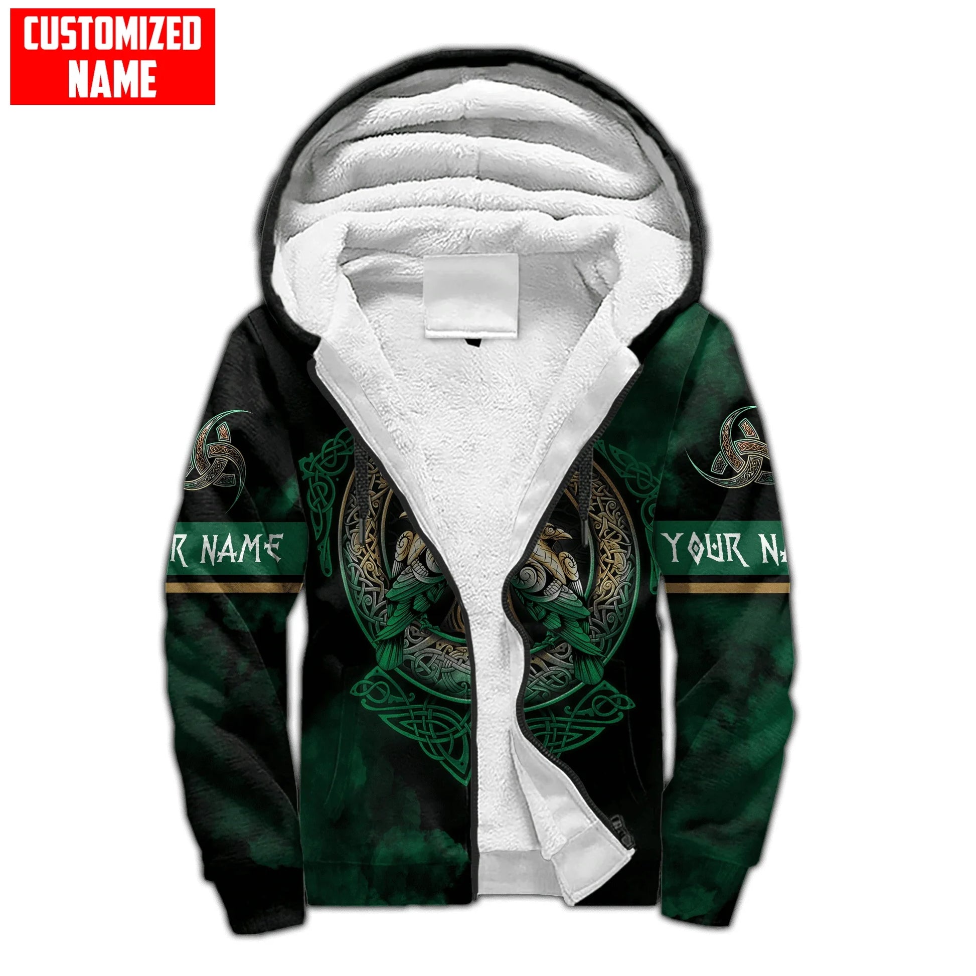 Stay warm this winter with the powerful Mjolnir Odin Raven tattoo 3D printed zip hoodie — a cozy, stylish fleece jacket perfect for casual wear and tracksuit styling.