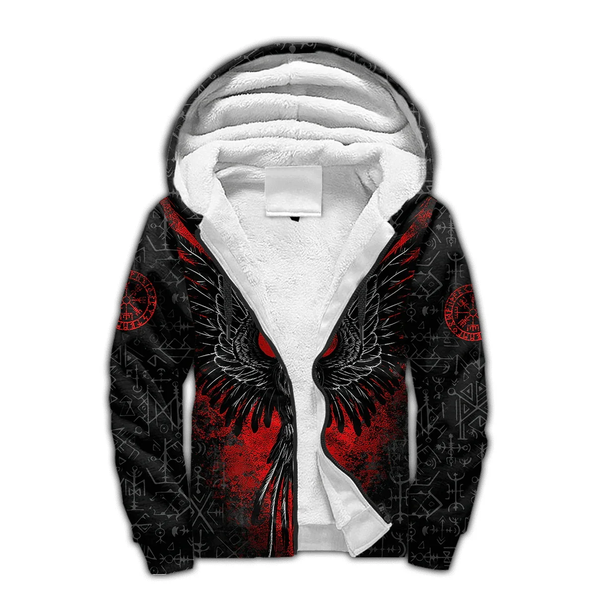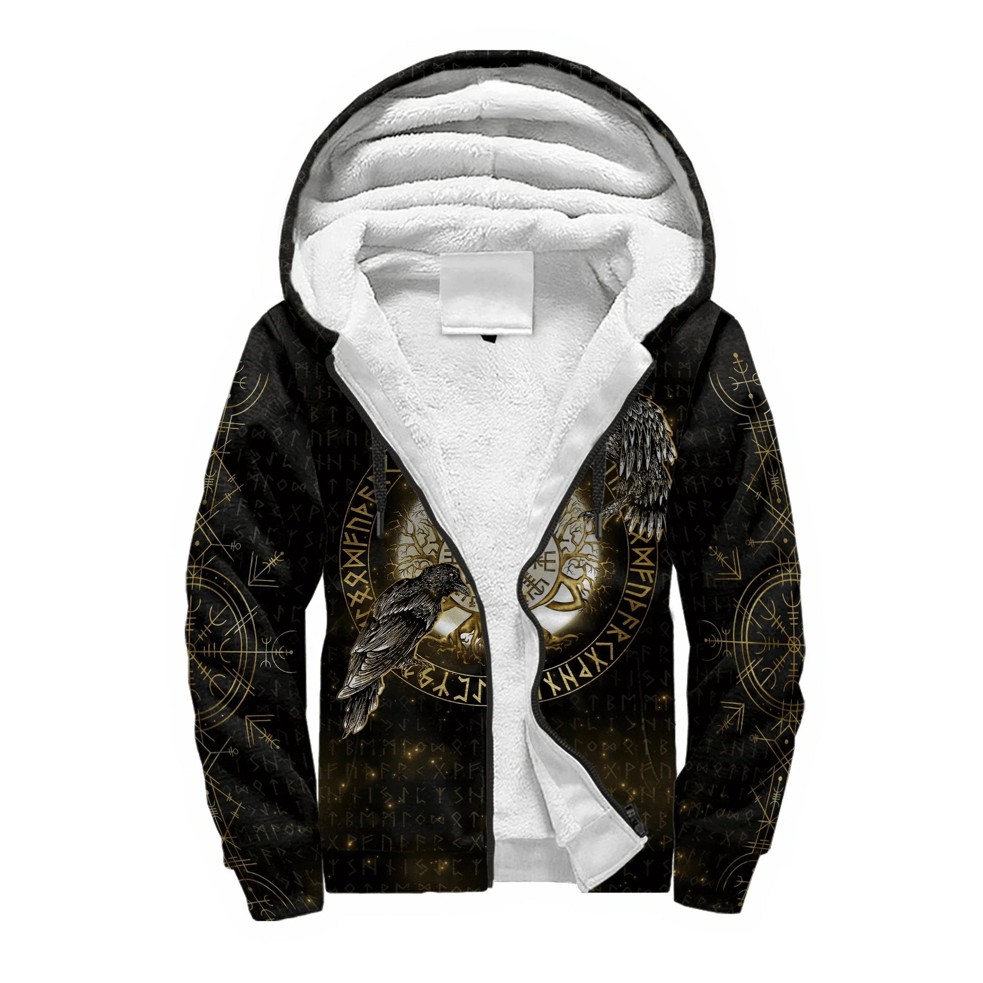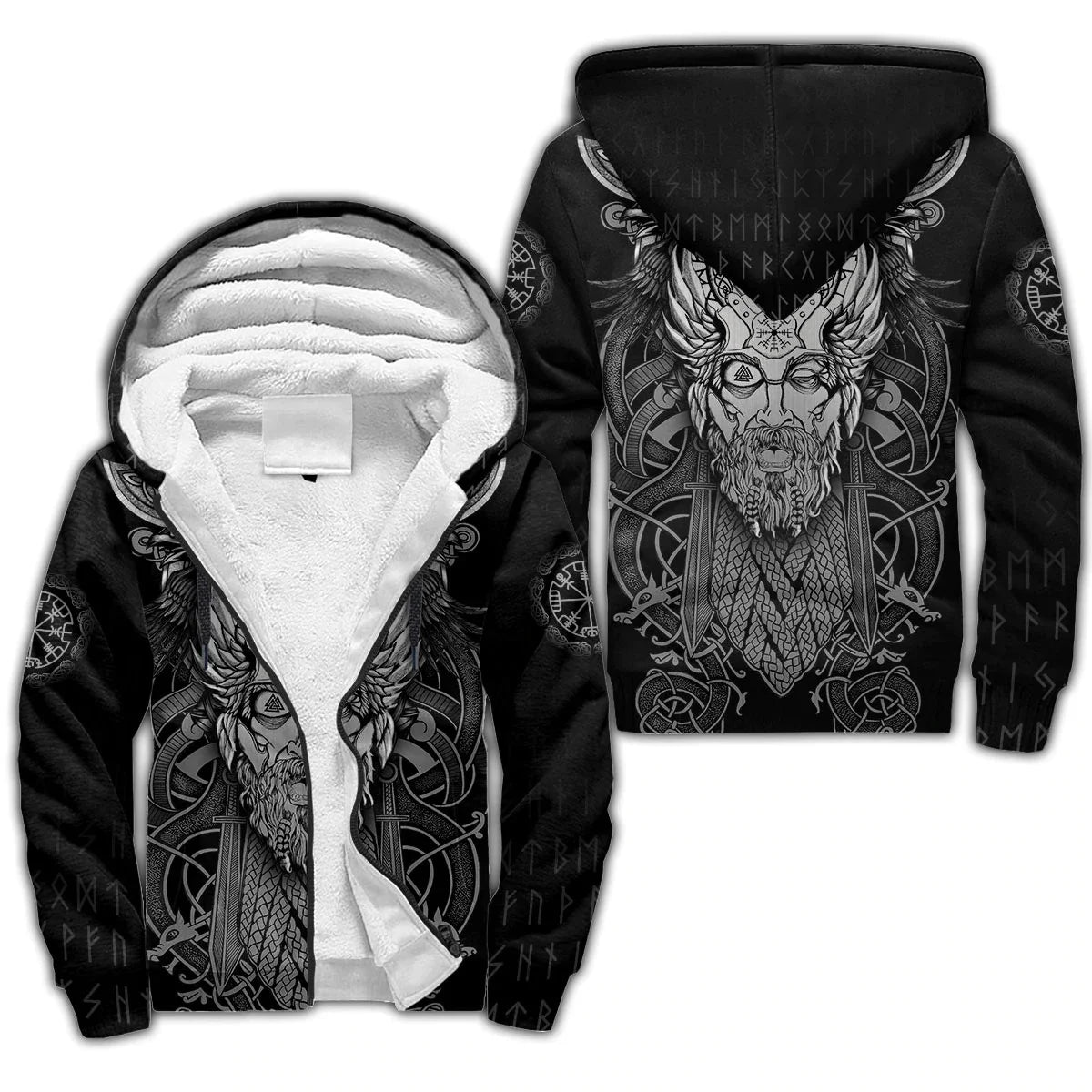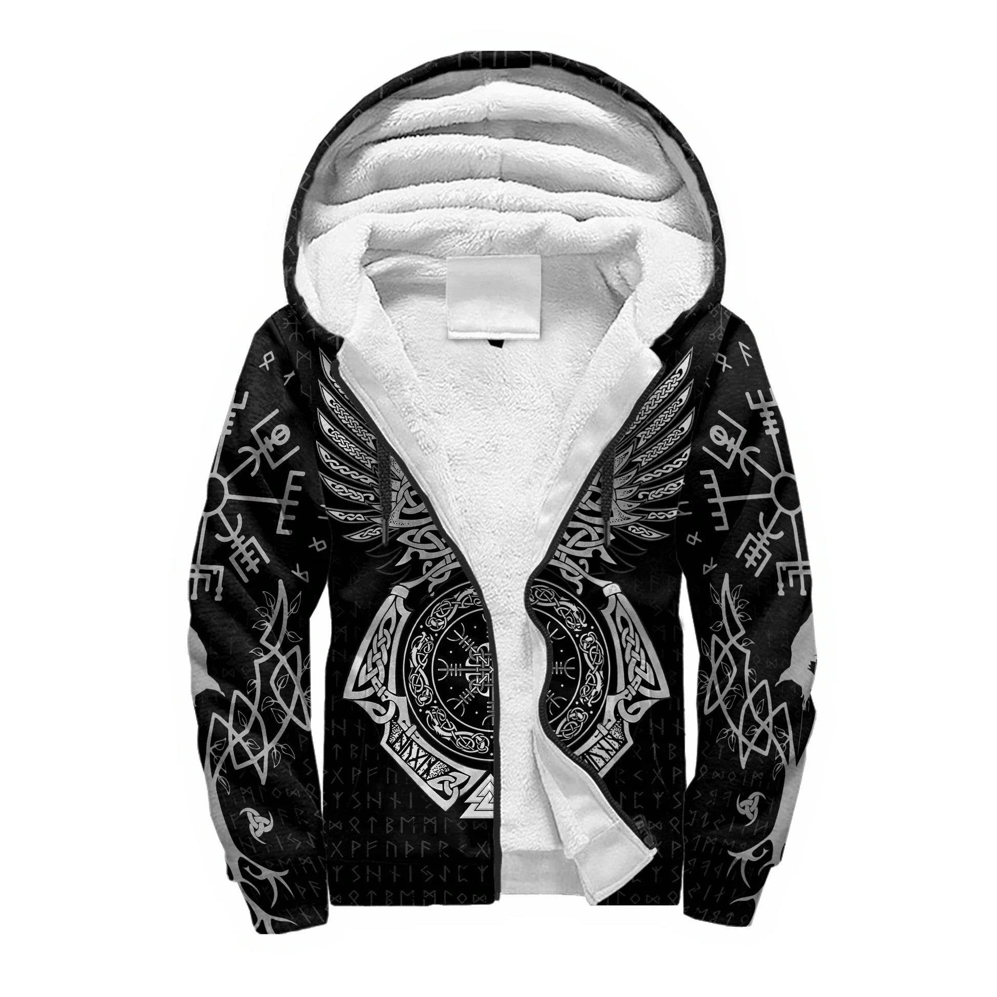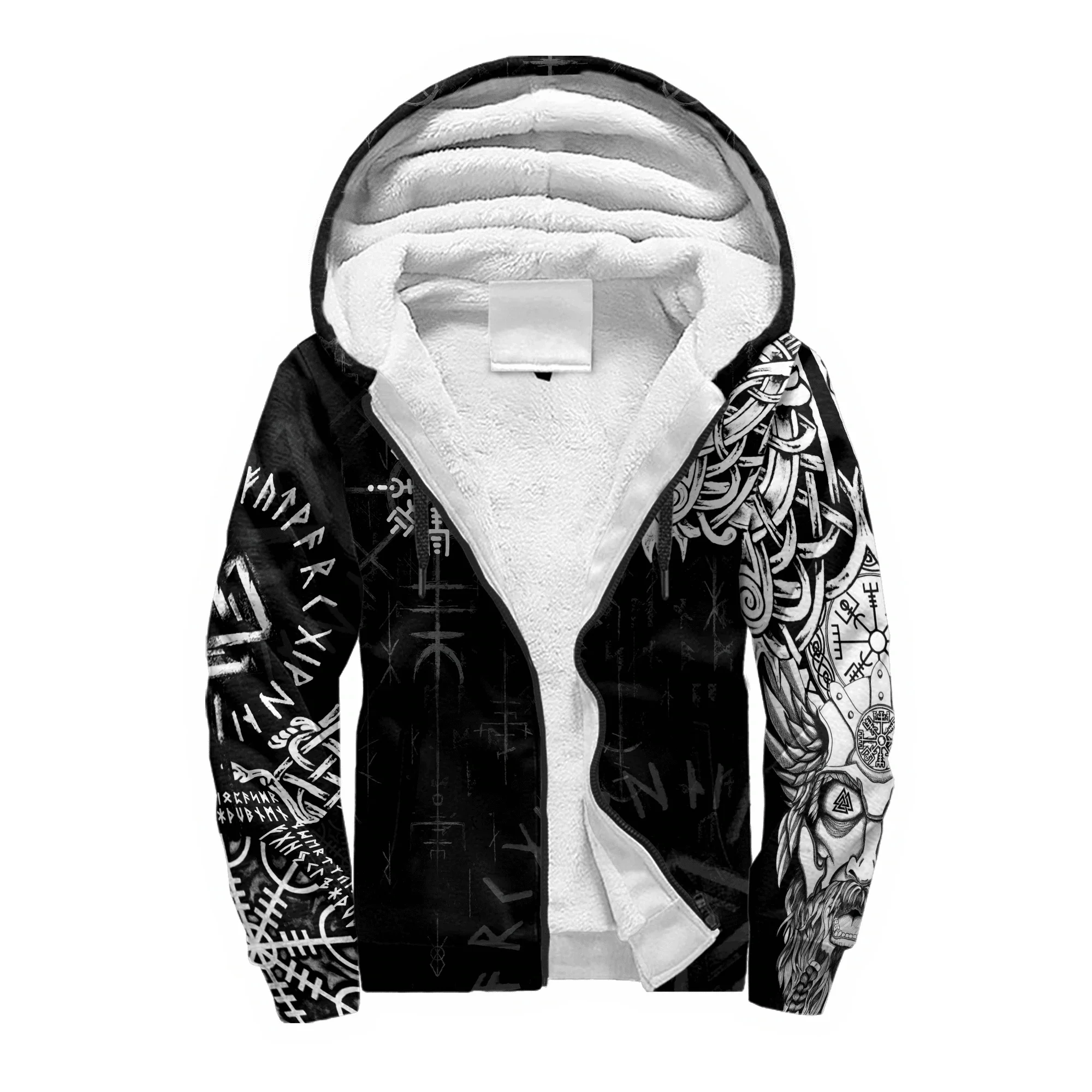 Mjolnir Odin Raven Tattoo 3D Printed Winter Zip Hoodie – Unisex Warm Fleece Tracksuit Jacket