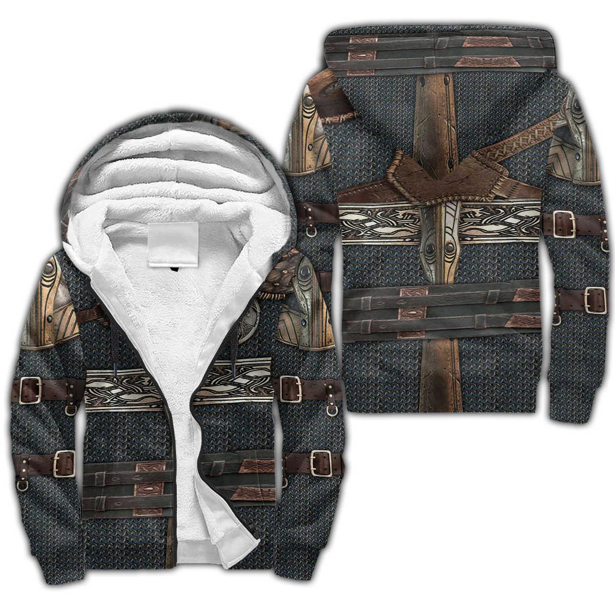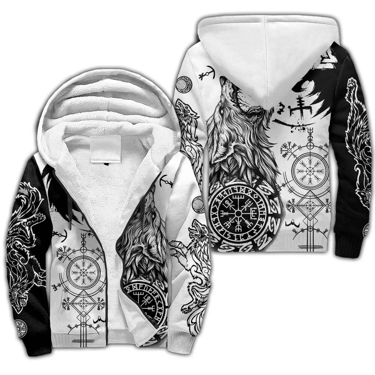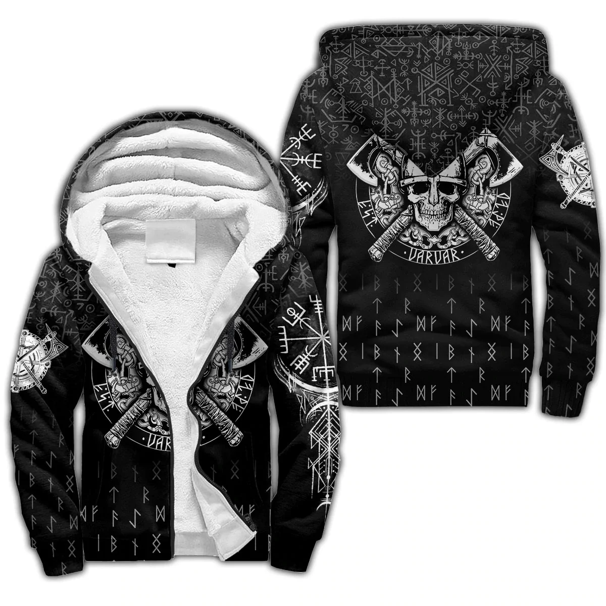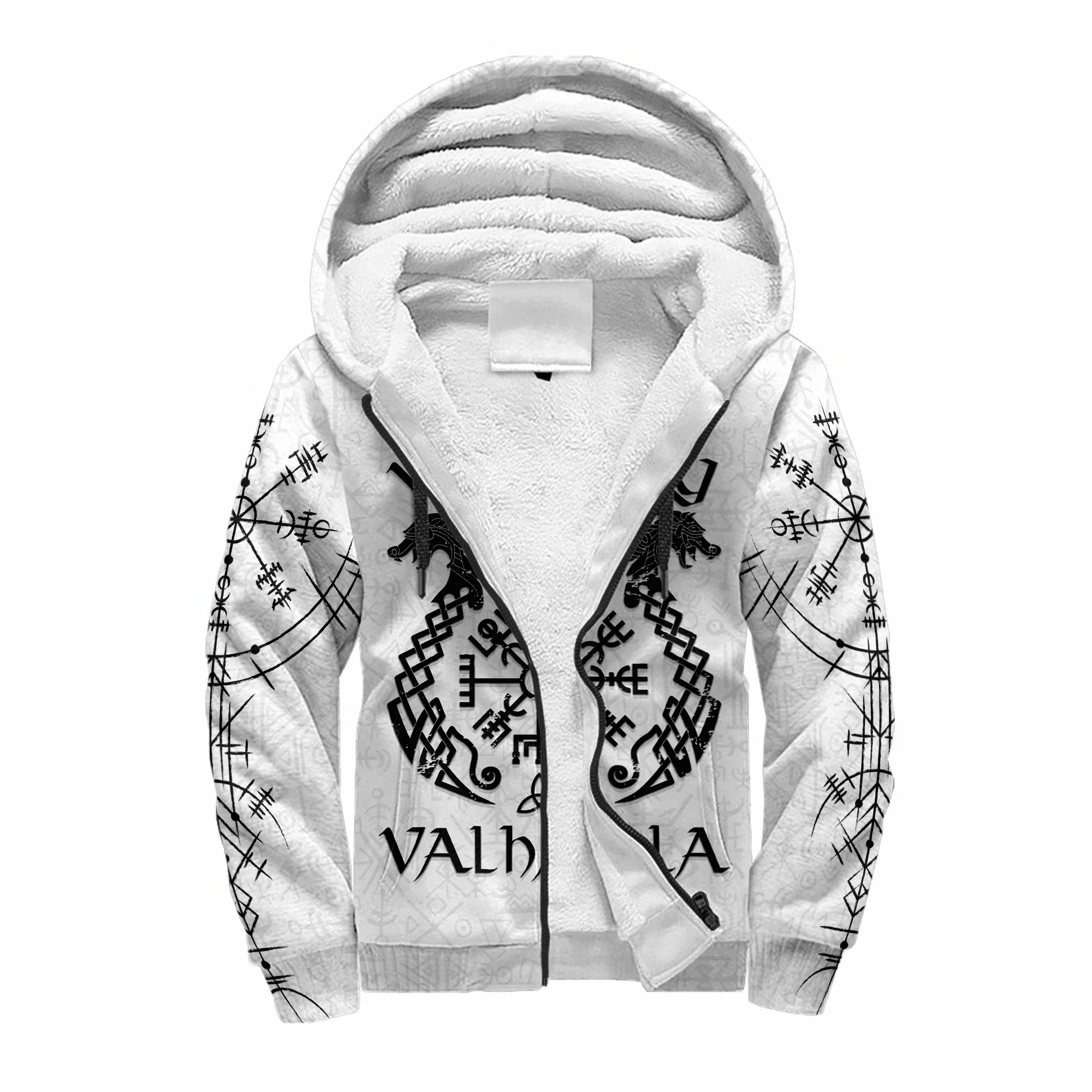Mjolnir Odin Raven Tattoo 3D Printed Winter Zip Hoodie – Unisex Warm Fleece Tracksuit Jacket
