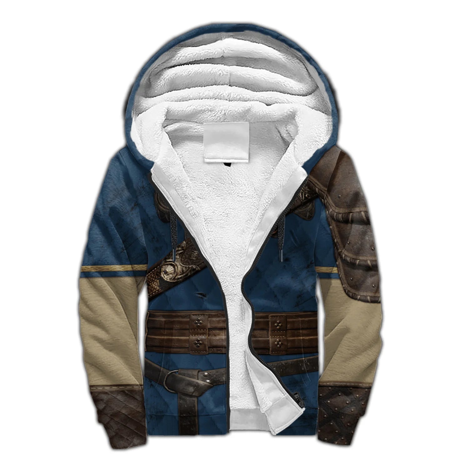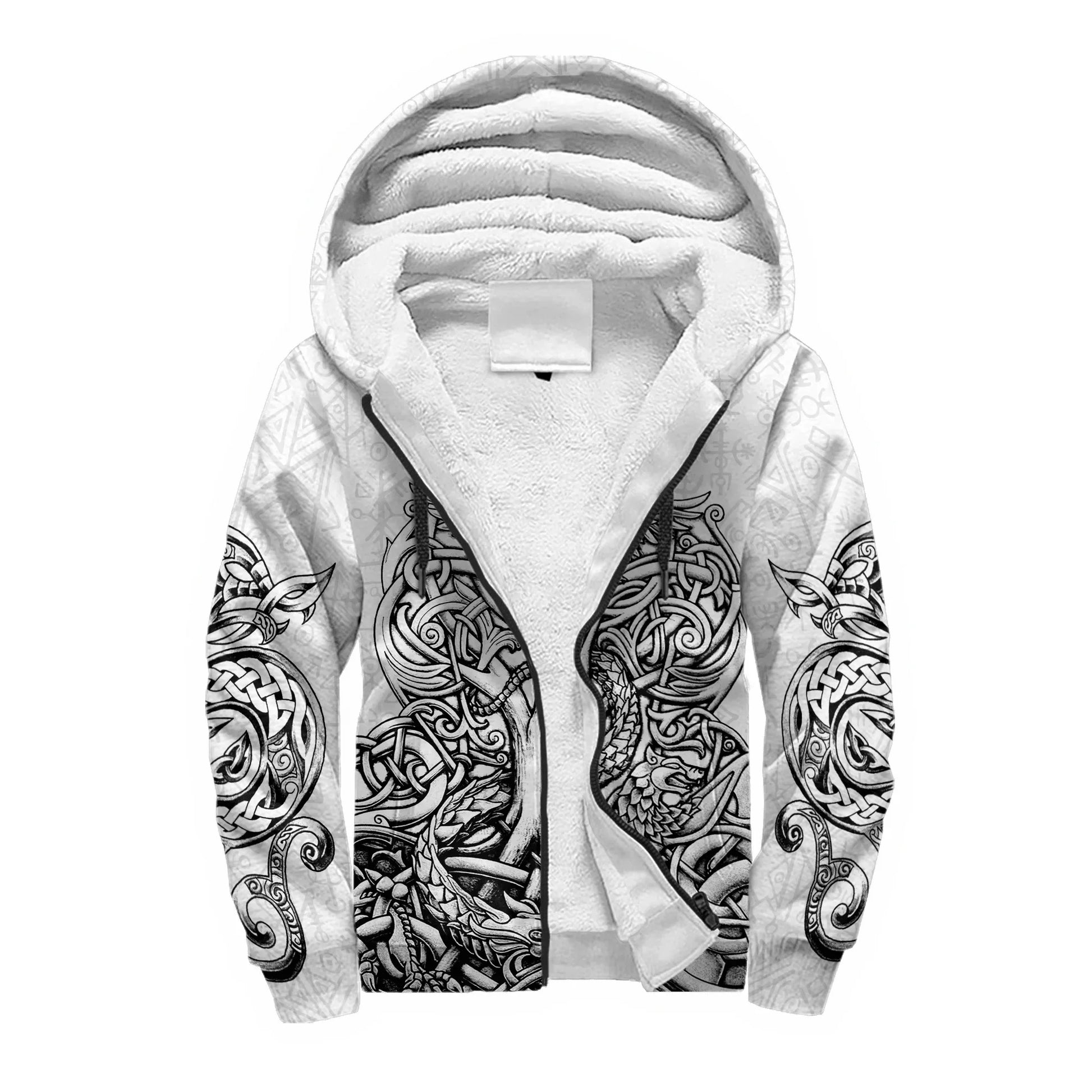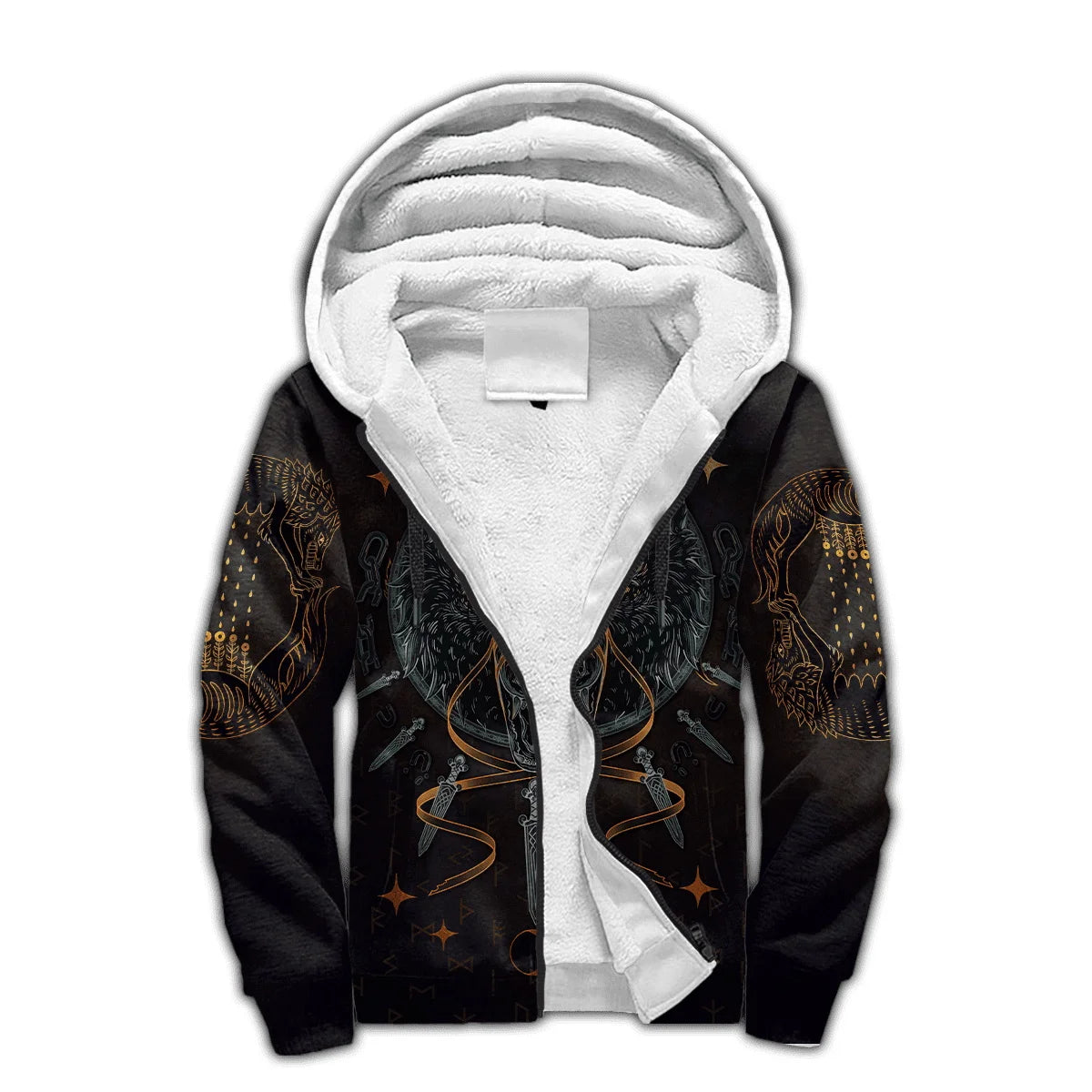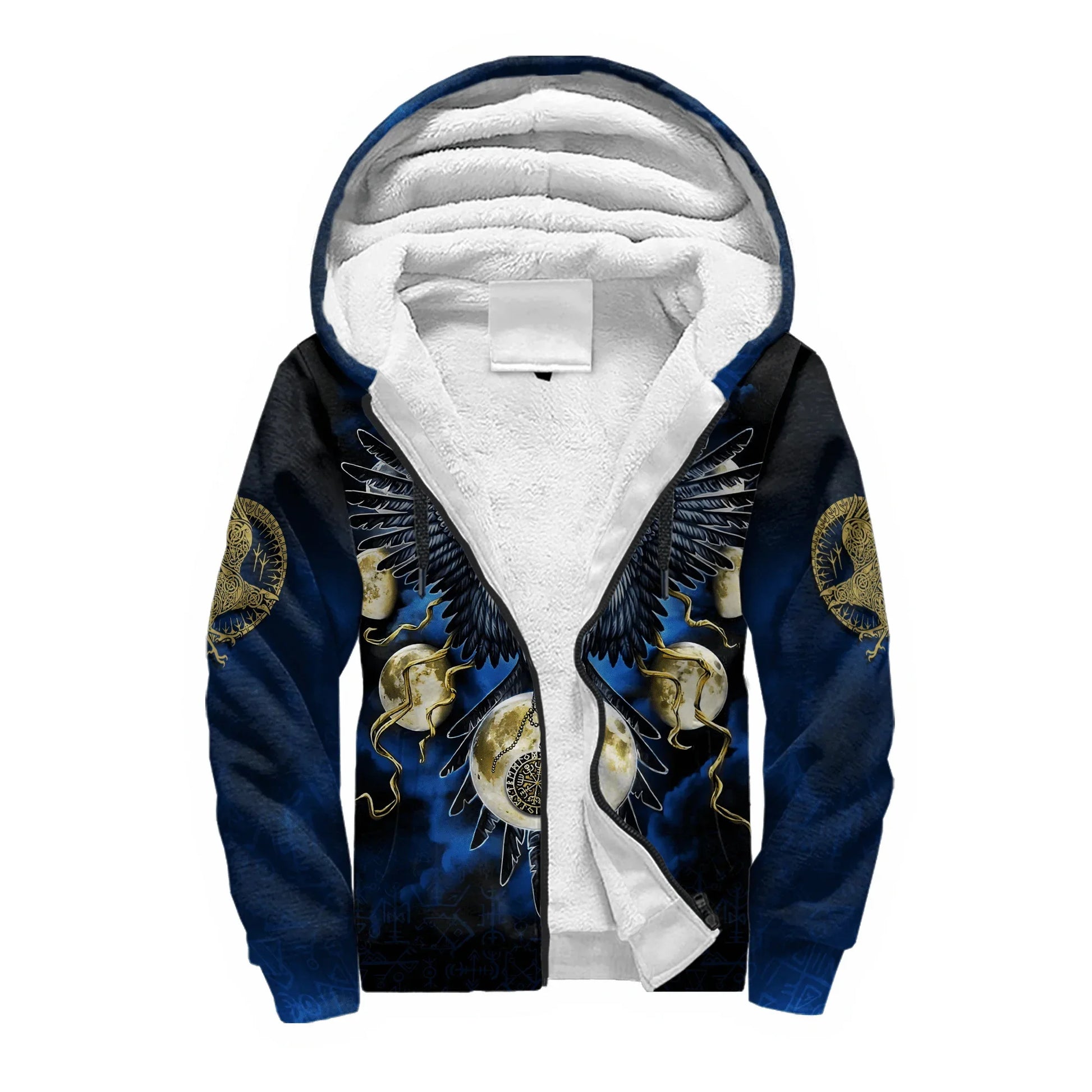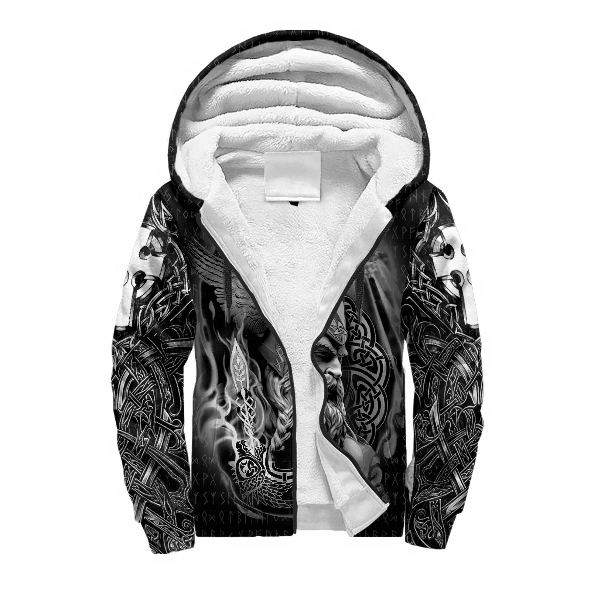 Mjolnir Odin Raven Wolf Tattoo 3D Printed Hoodie – Unisex Winter Thick Fleece Zip-Up