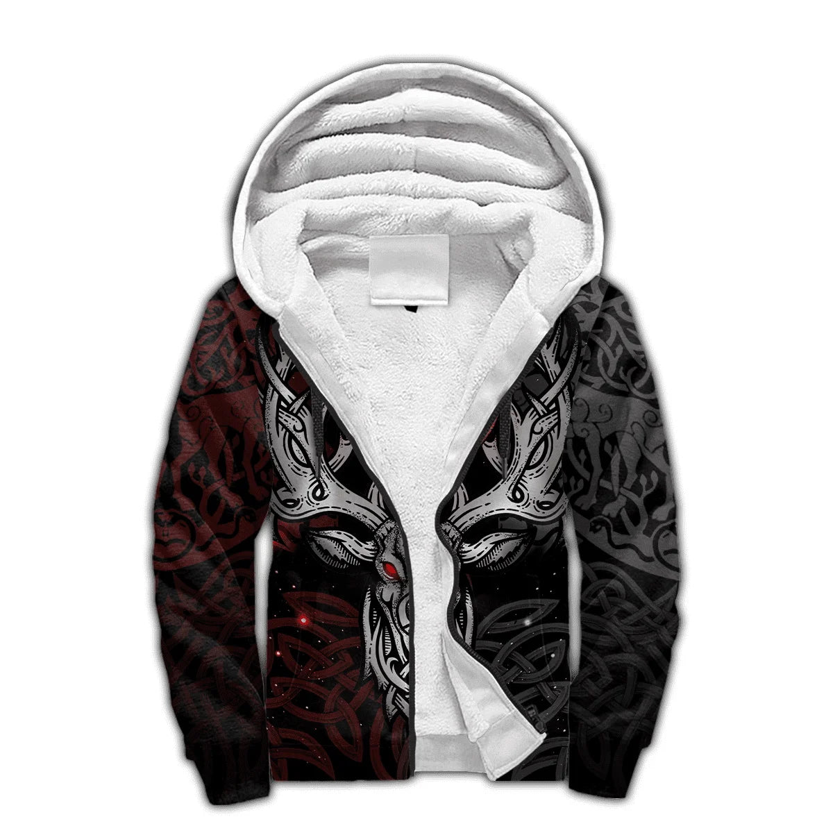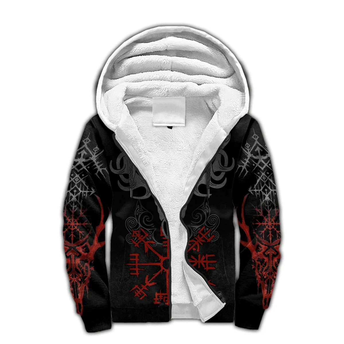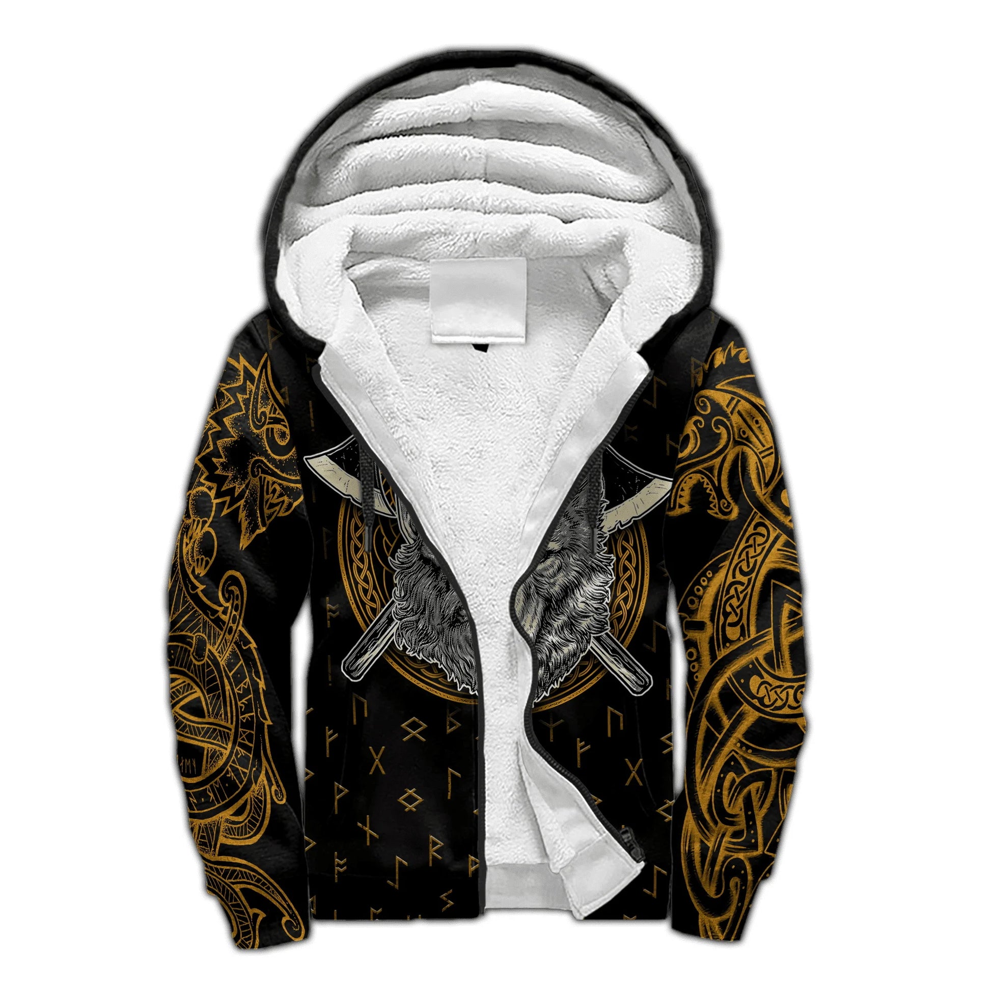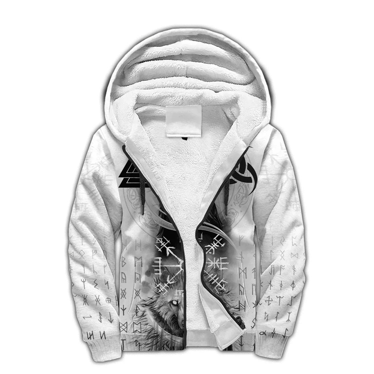 Stay warm and embody Norse power this winter with the Mjolnir Odin Raven Wolf tattoo 3D printed hoodie — a thick, cozy zip-up perfect for casual and tracksuit wear.