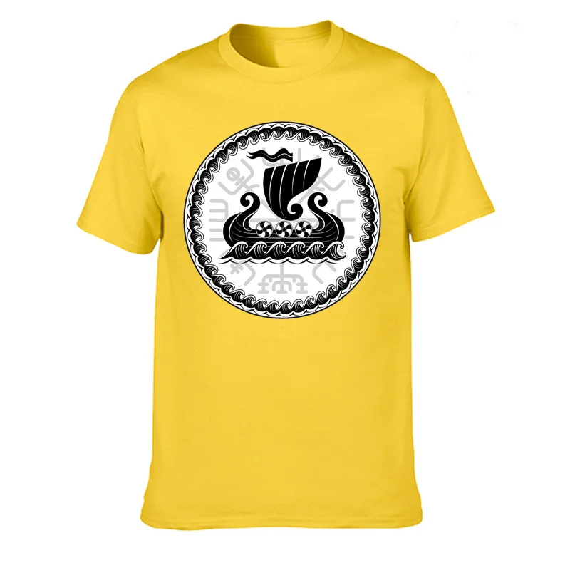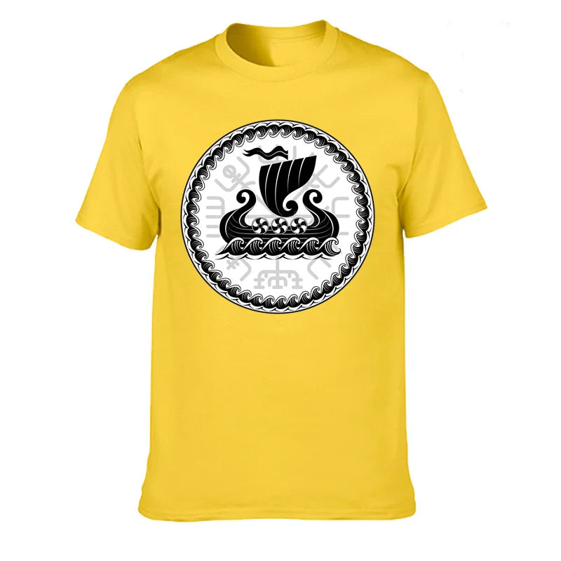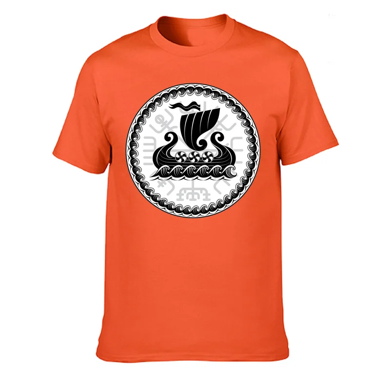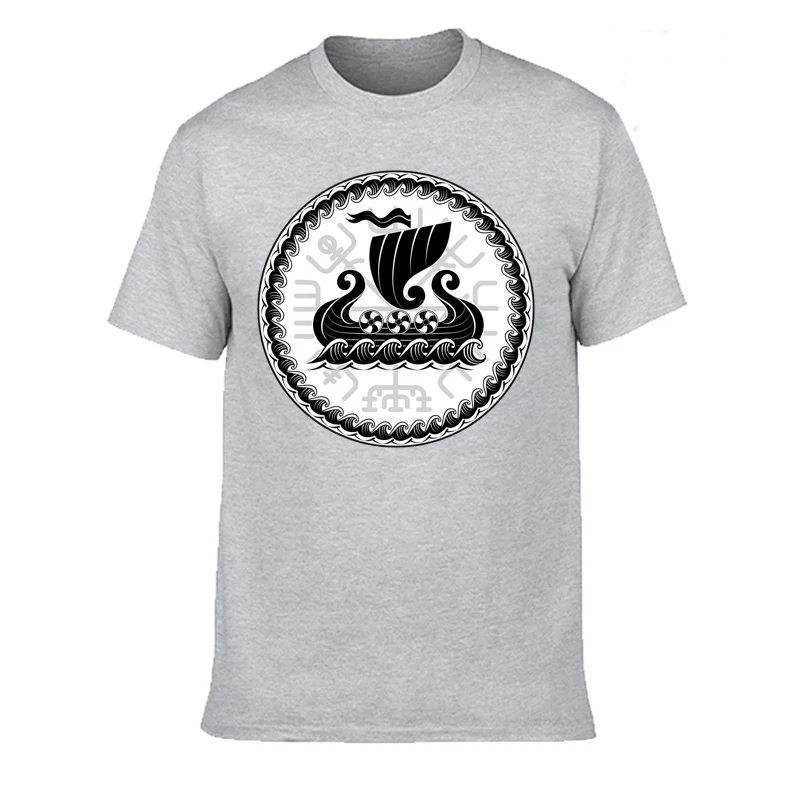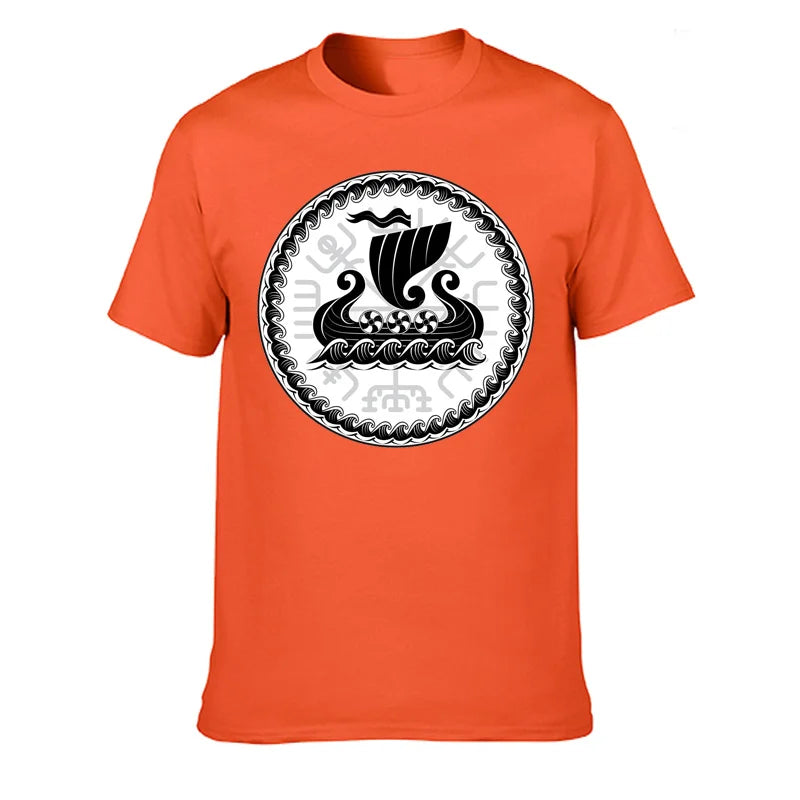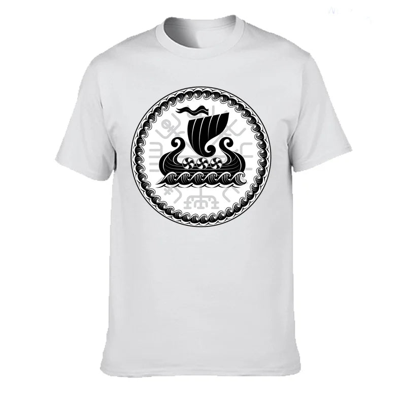 New Summer T-Shirt – Viking Icelandic Vegvisir Compass Rune Amulet Men’s Casual Crew Neck Cotton Top (Plus Size)