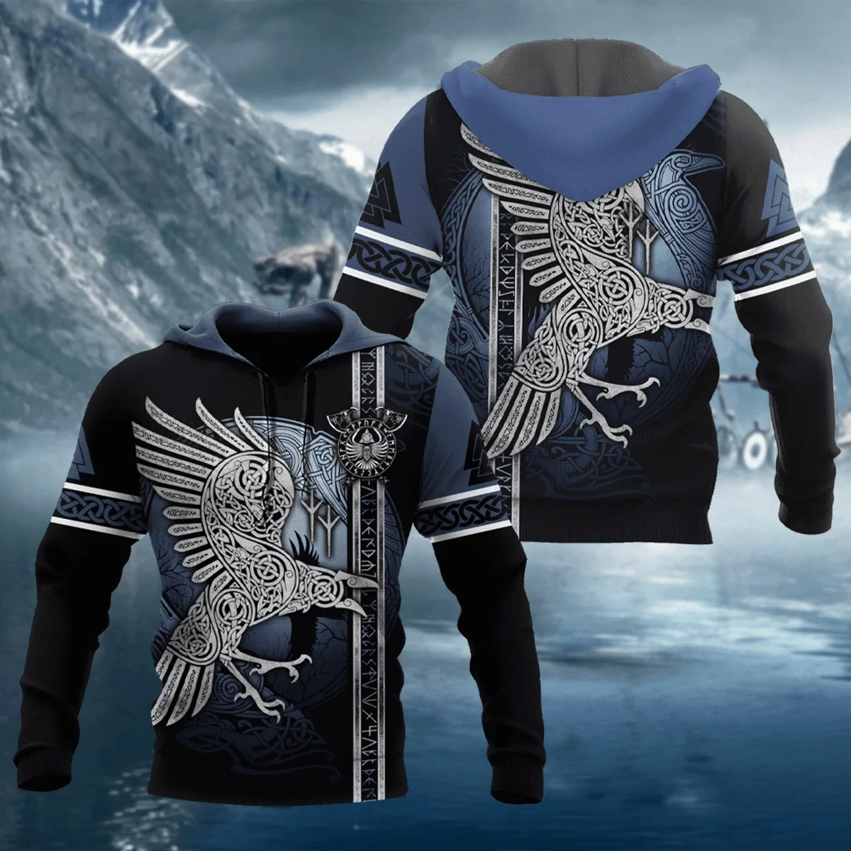 Dive into Norse legends with this all-over 3D printed hoodie featuring Odin and raven tattoo art — a stylish, comfortable piece perfect for autumn casual wear.