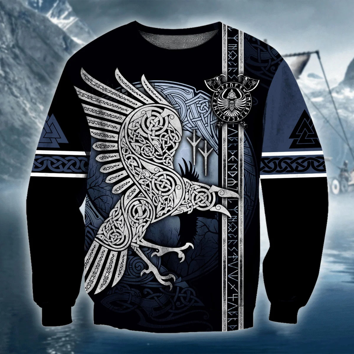 Wear the power of Odin wherever you go — get your 3D printed raven tattoo hoodie today!