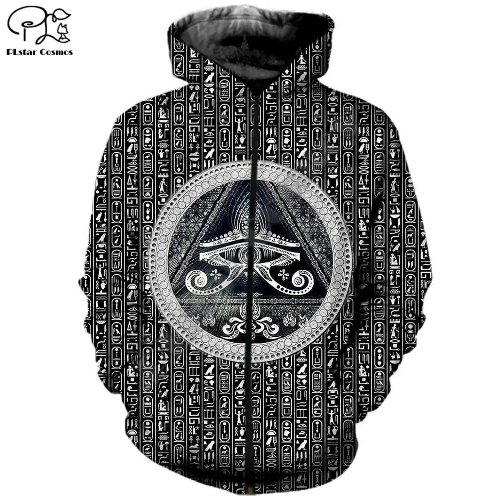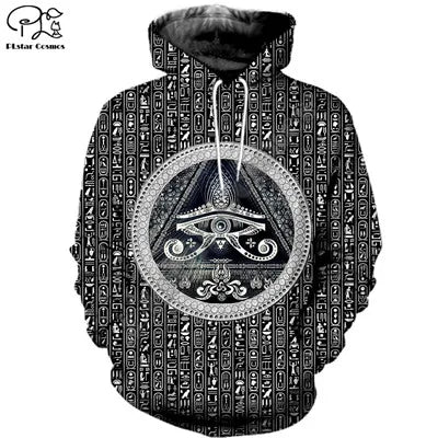 Embrace the power of Ancient Egypt with this PLstar Cosmos 3D printed hoodie featuring Horus, the Eye of Egypt, Pharaoh Anubis, and other iconic symbols — perfect for men and women who love bold, mythological streetwear.