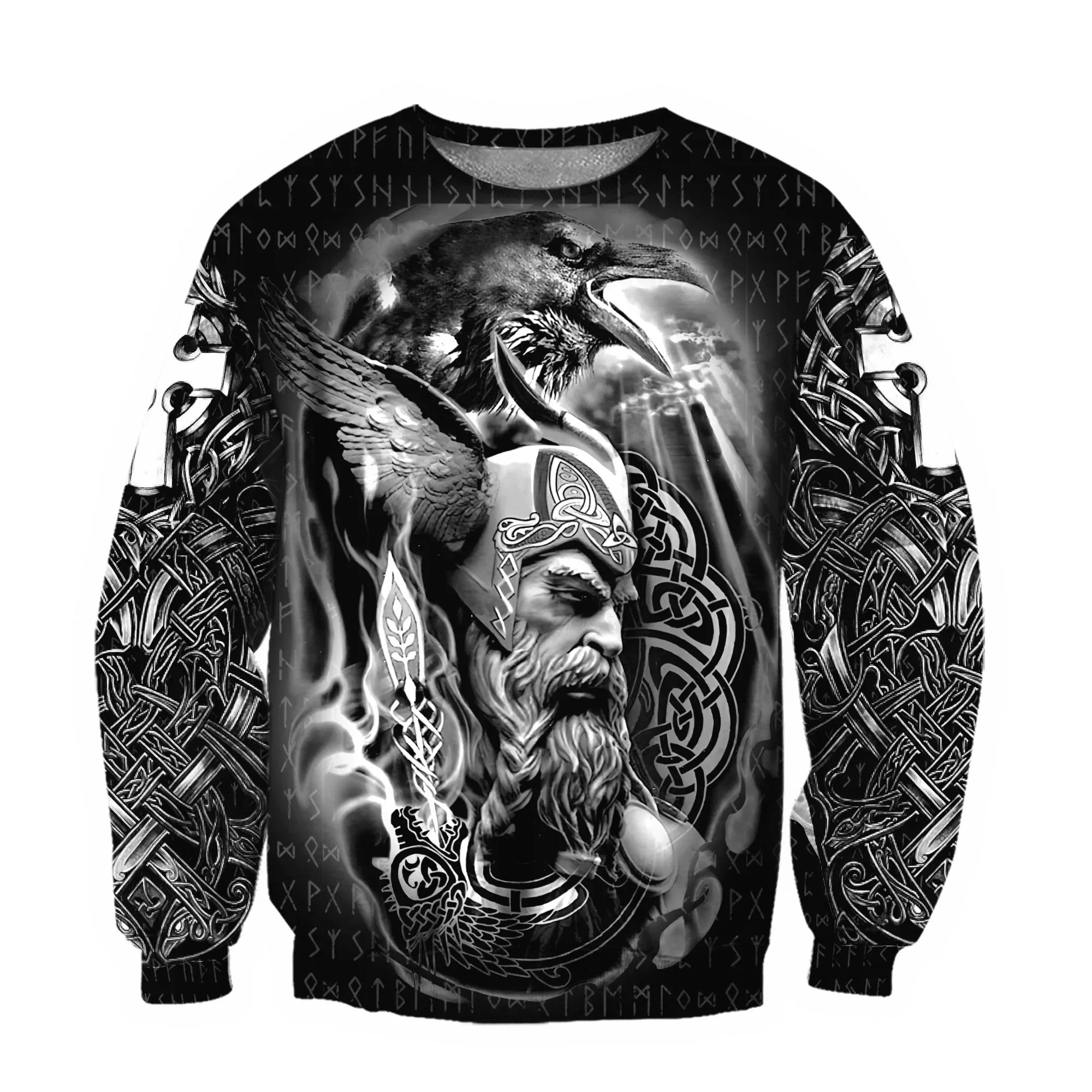 Embrace Norse mythology with this striking Odin Raven Wolf tattoo 3D printed hoodie — a perfect blend of casual sportswear and bold, artistic design for autumn.