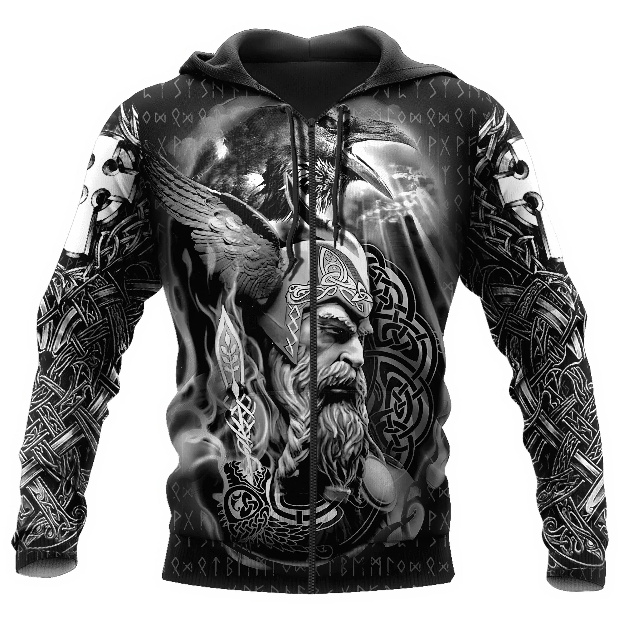 PLstar Cosmos Odin Raven Wolf Tattoo 3D Printed Hoodie & Sweatshirt – Unisex Autumn Zip Hoodie