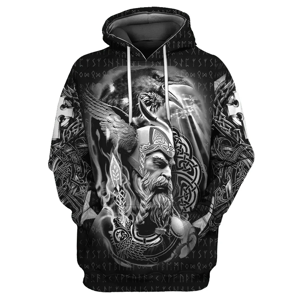 Channel the spirit of the Norse gods — grab your Odin Raven Wolf 3D printed hoodie today!