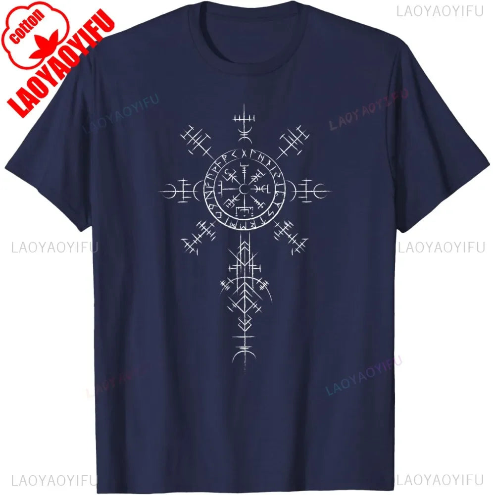 Channel ancient Norse power with this Retro Viking Vegvisir T-shirt — featuring a gothic Nordic rune compass design, crafted from soft cotton for comfortable everyday wear.