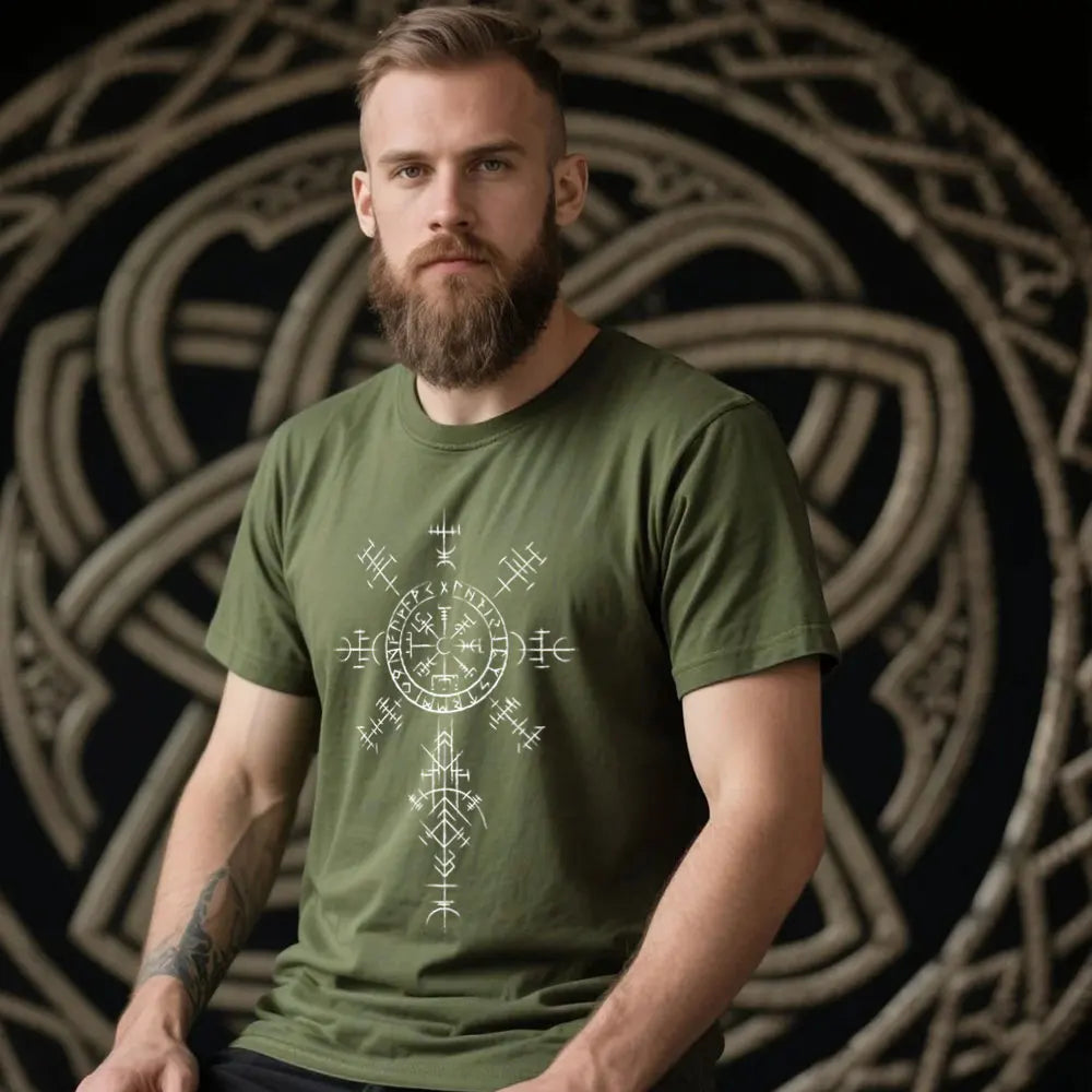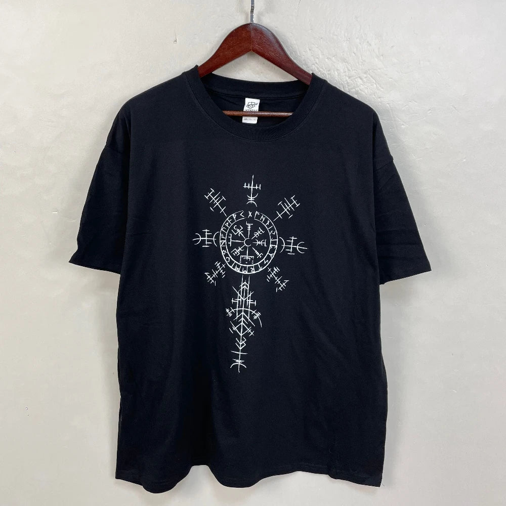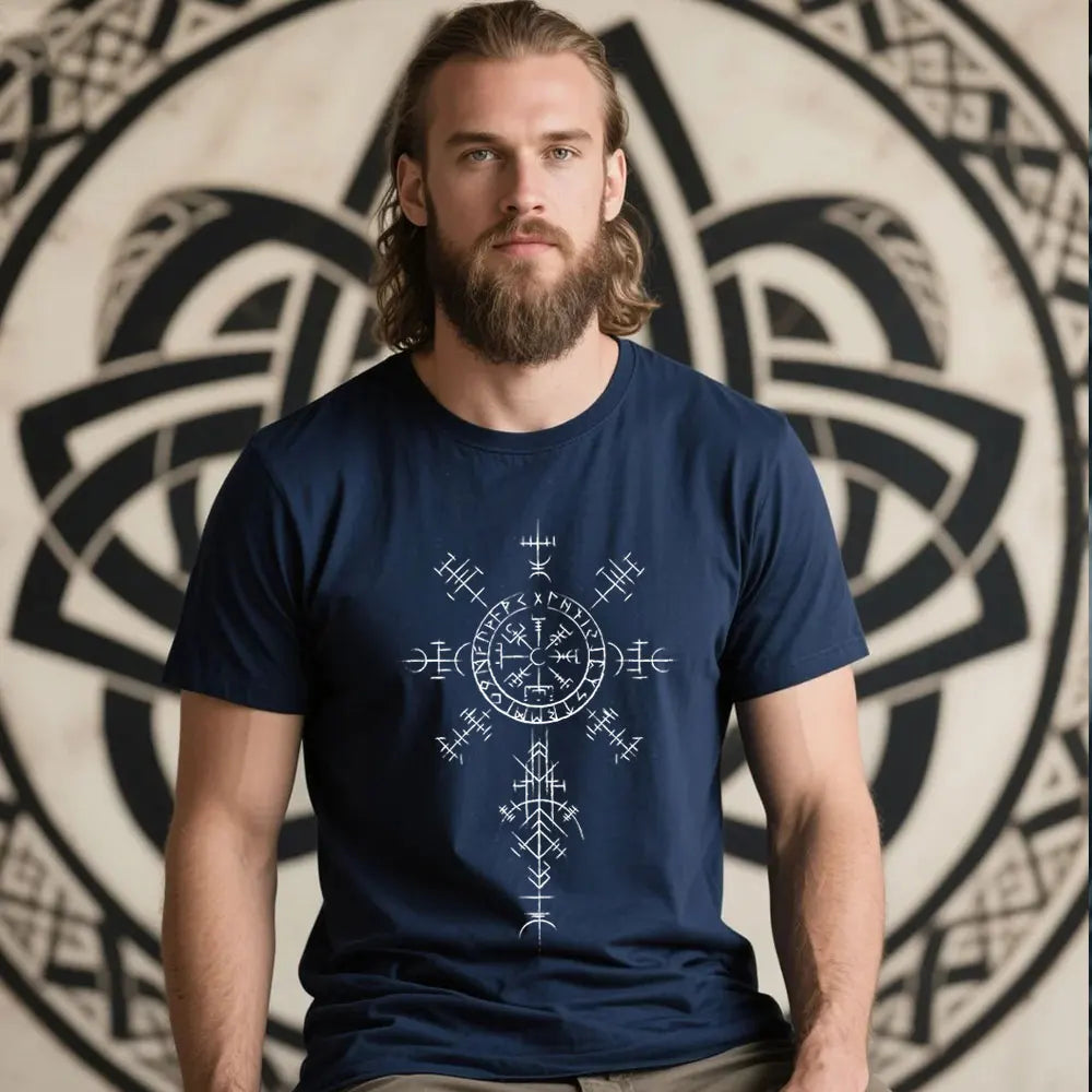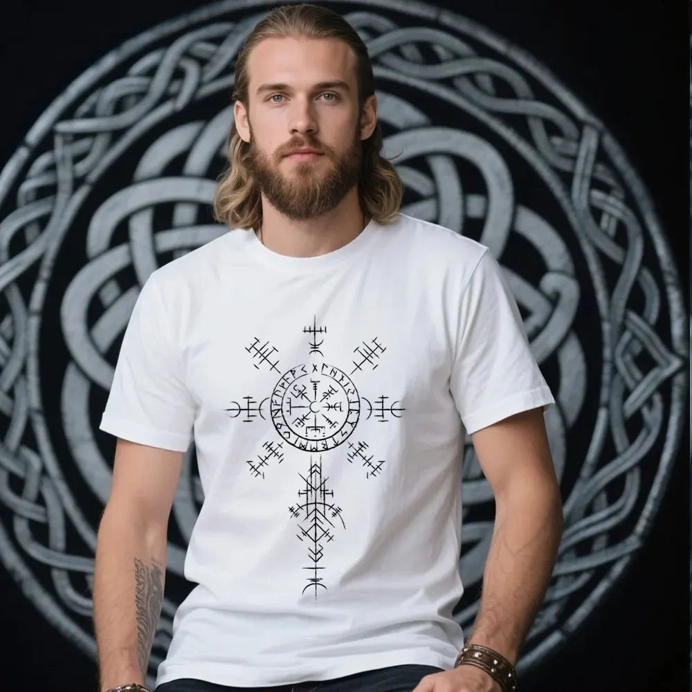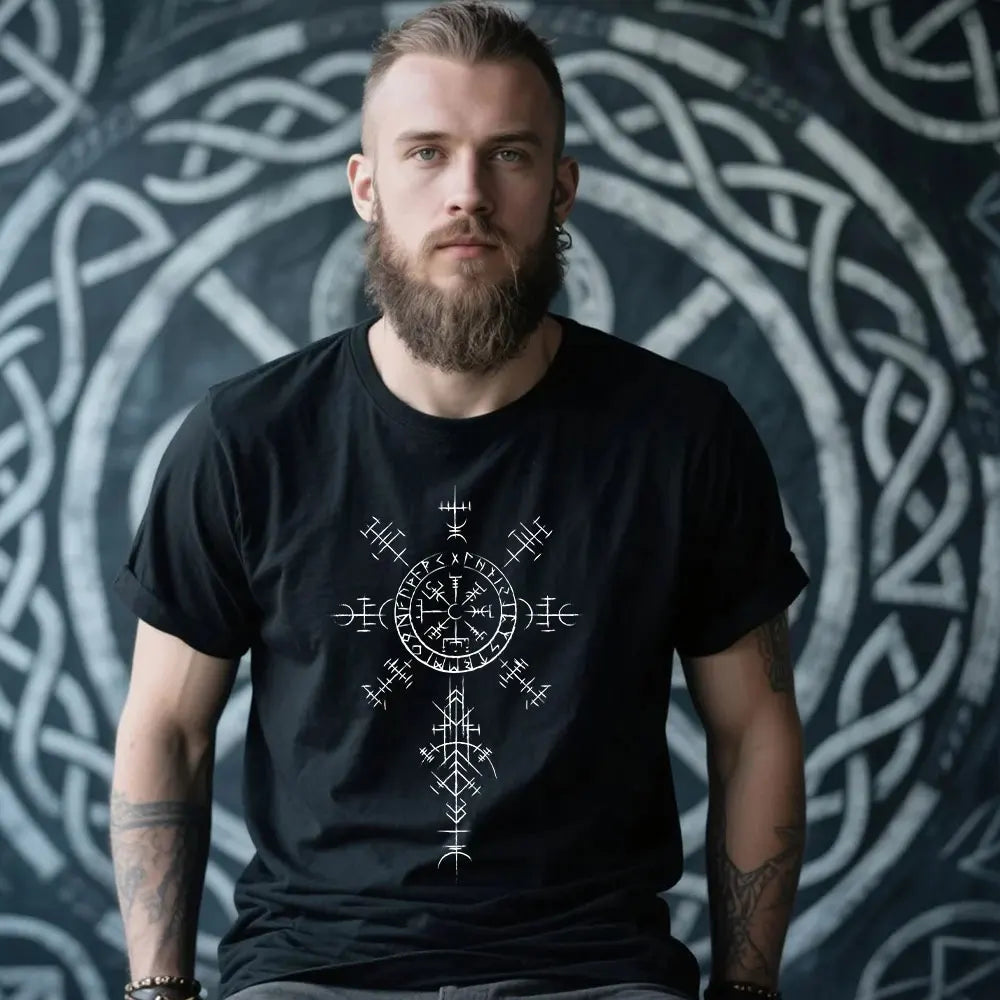 Retro Viking Vegvisir T-Shirt – Men’s Gothic Nordic Rune Compass Graphic Tee