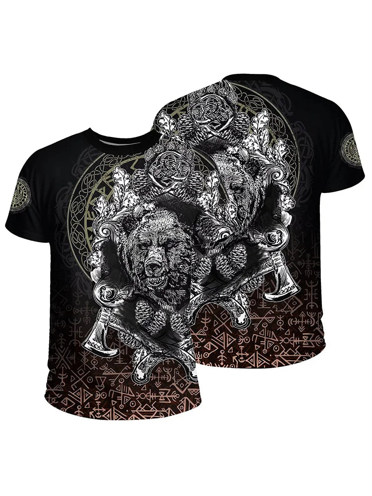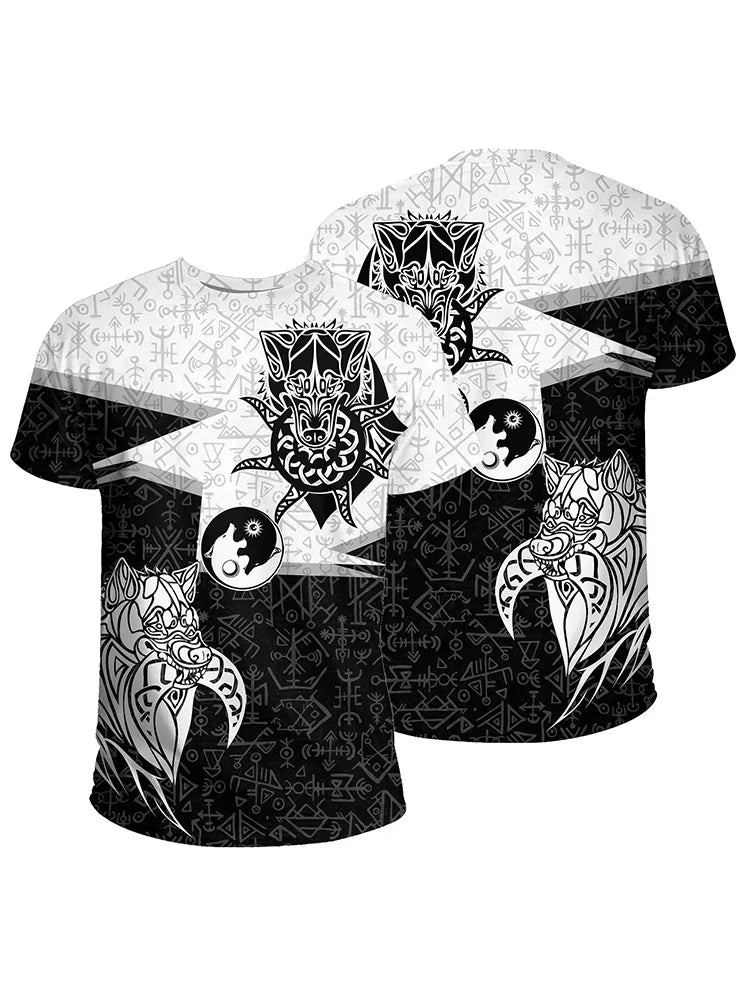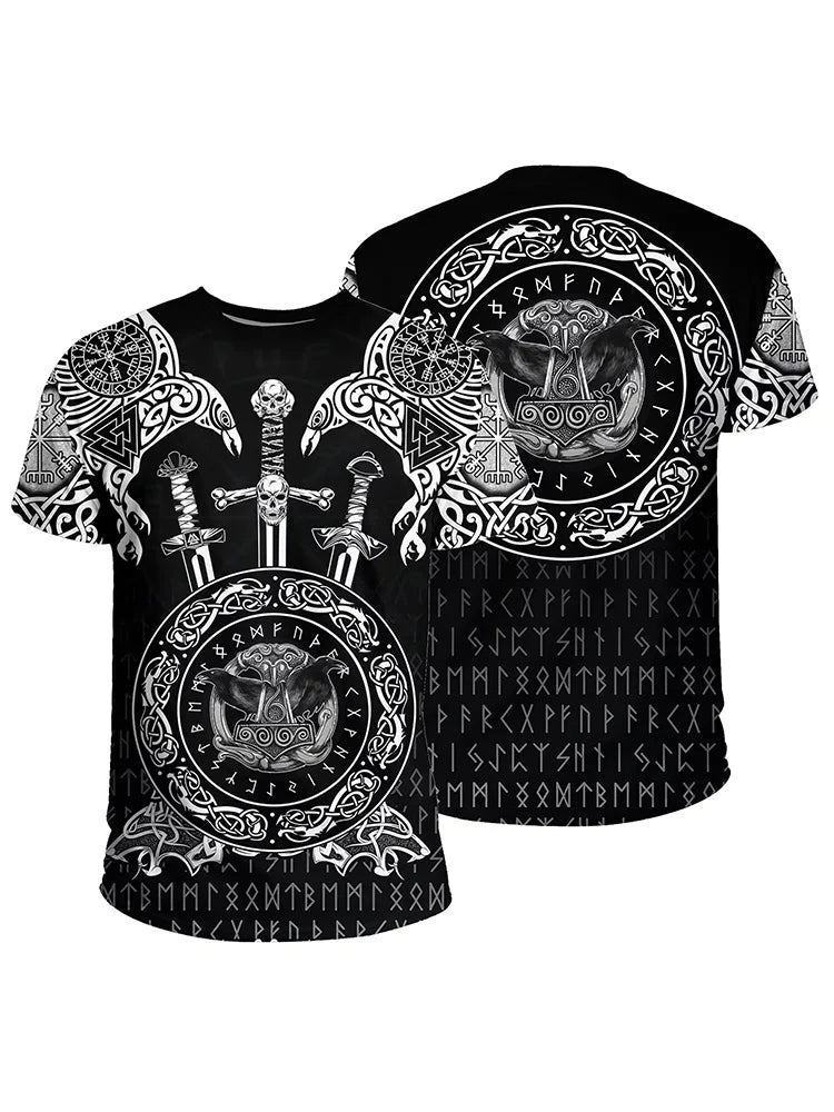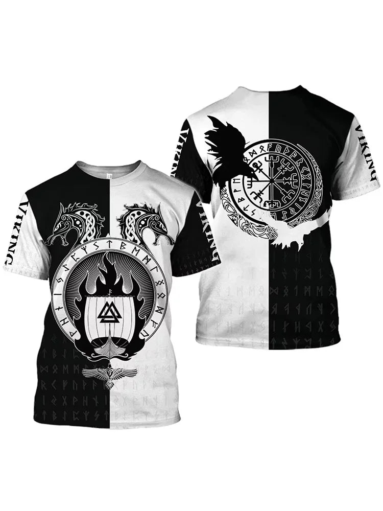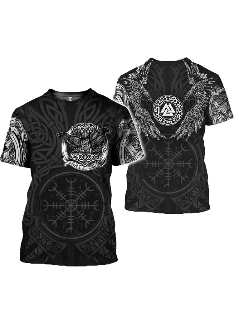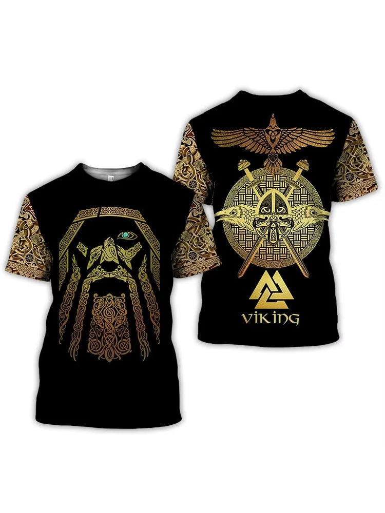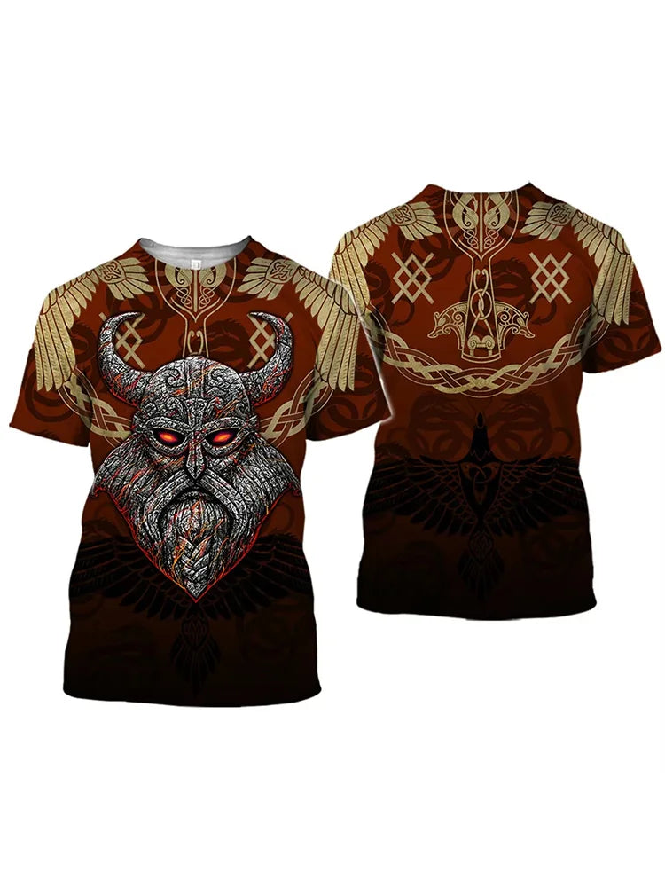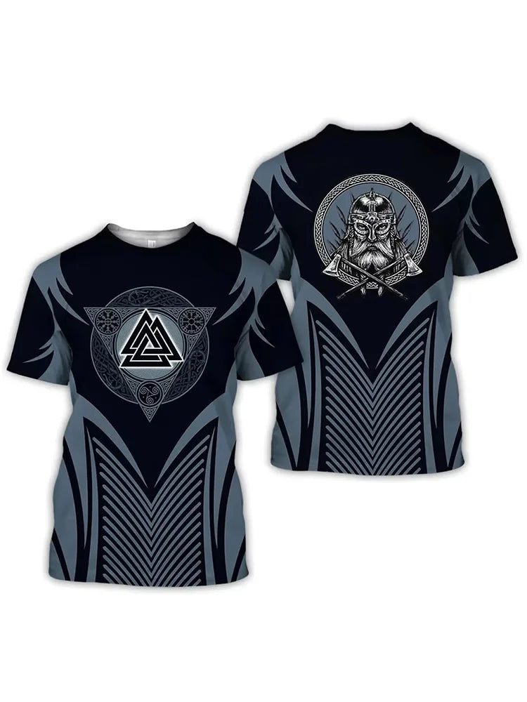Street Men’s Comfort Hip-Hop T-Shirt – Latest Viking Symbol 3D Printed Oversized Summer Top