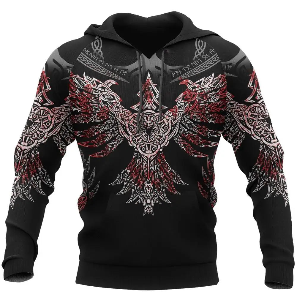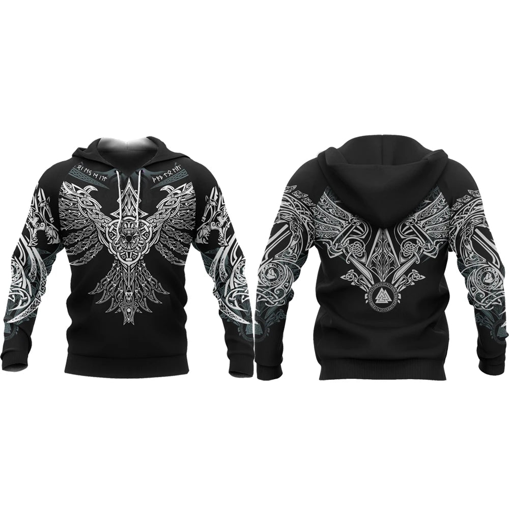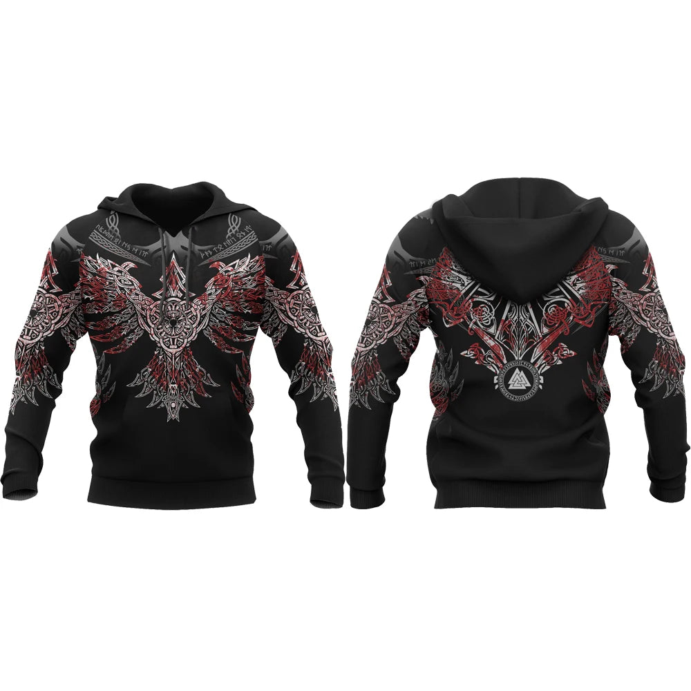 Unleash your inner Viking spirit — grab the Raven of Odin 3D printed hoodie today!