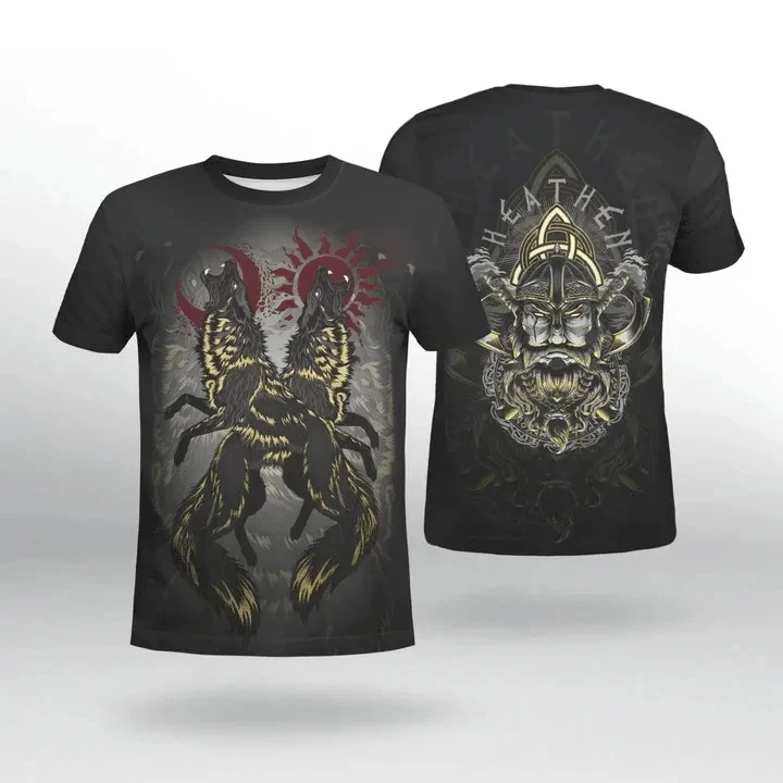 Make a bold statement with the Viking Myth Valhalla Totem T-shirt — featuring striking 3D prints inspired by Norse legends, perfect for Y2K streetwear lovers seeking cool, unisex summer fashion.