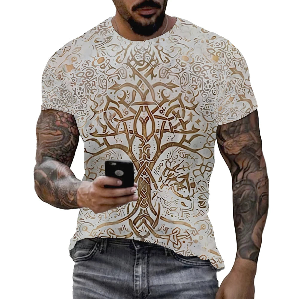 Viking Tattoo 3D Printed Men’s T-Shirt – Tree of Life Graphics with Triquetra, Nordic Warrior Style Vintage Designer Clothing
