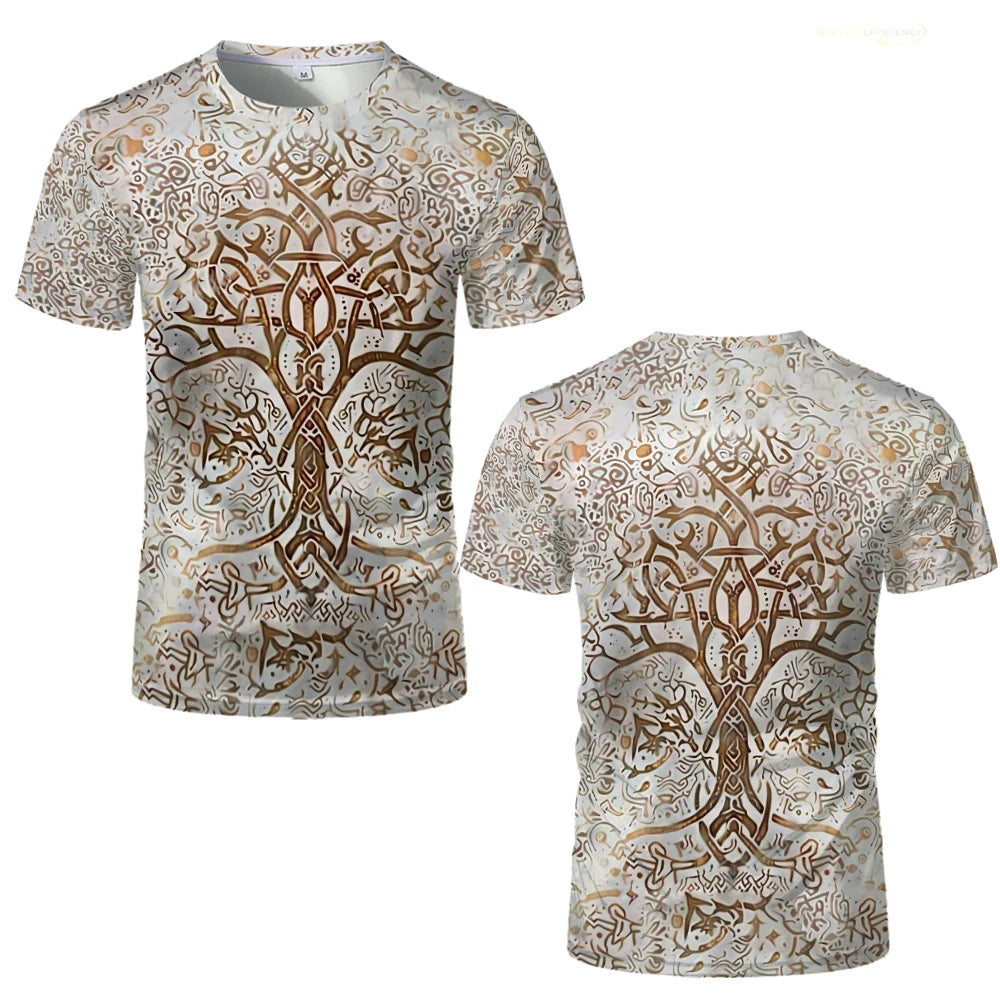 Embrace ancient Nordic heritage with this Viking Tattoo 3D printed T-shirt, featuring the Tree of Life and Triquetra symbols — a vintage-inspired design perfect for modern warriors.