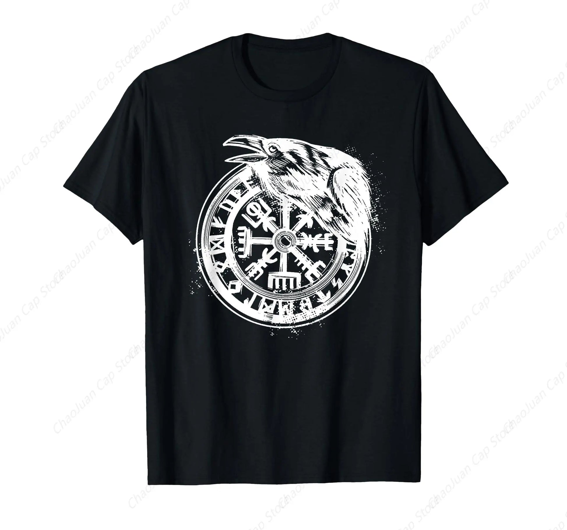 Navigate your style with this Viking Vegvisir Compass T-shirt, featuring a striking crow design inspired by Nordic Norse mythology — perfect for mythology fans and Viking enthusiasts.