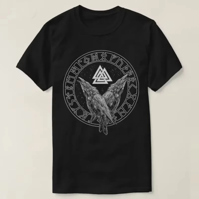 Vikingiess Rise Valknut Rune Hugin and Munin Odin Raven T-Shirt – New 100% Cotton Short Sleeve O-Neck Casual Men’s Top