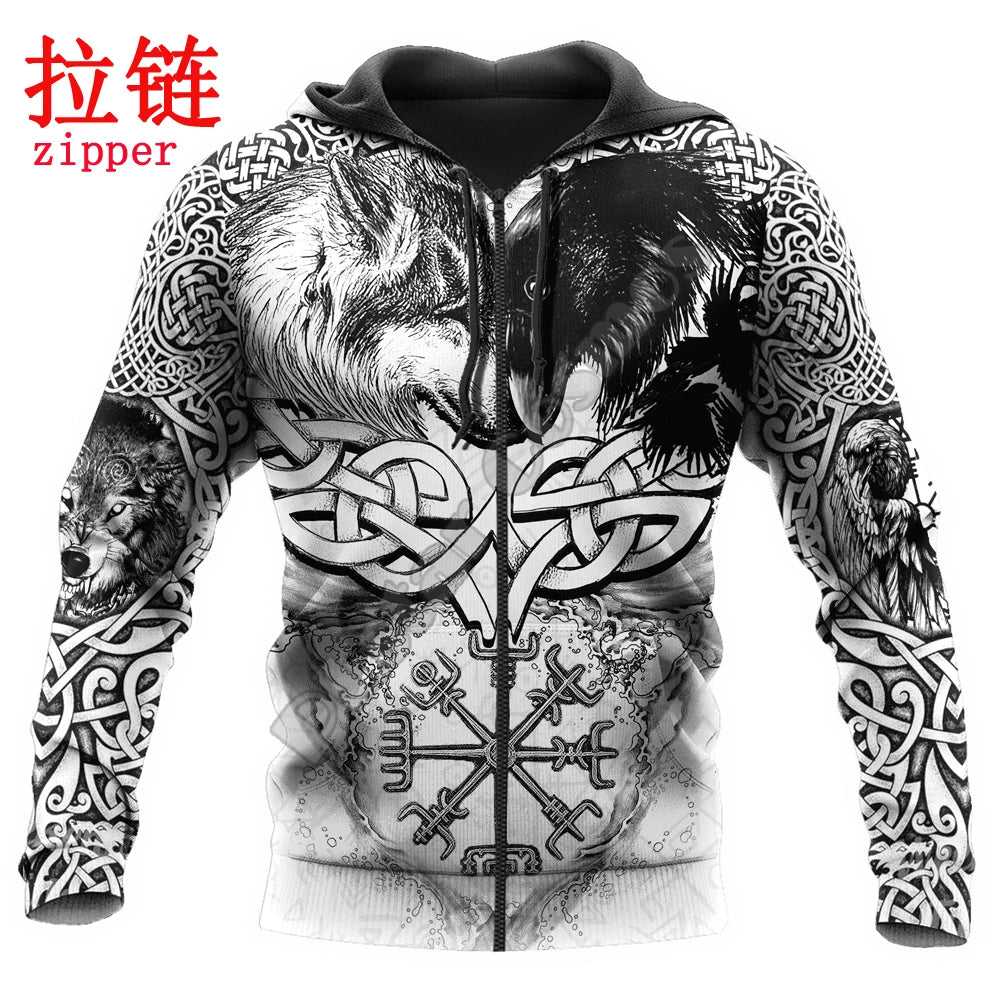 Wolf Odin Raven Compass Tattoo 3D All-Over Printed Hoodie – Unisex Autumn Zip-Up Sweatshirt