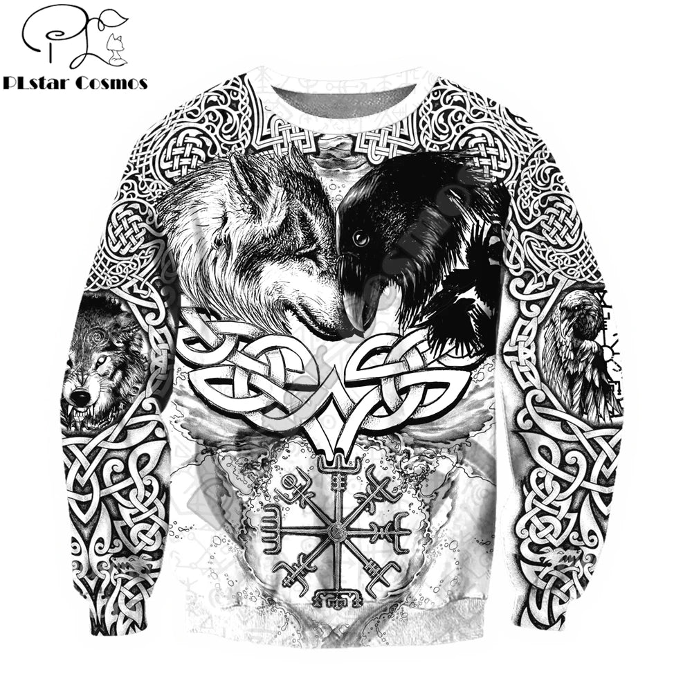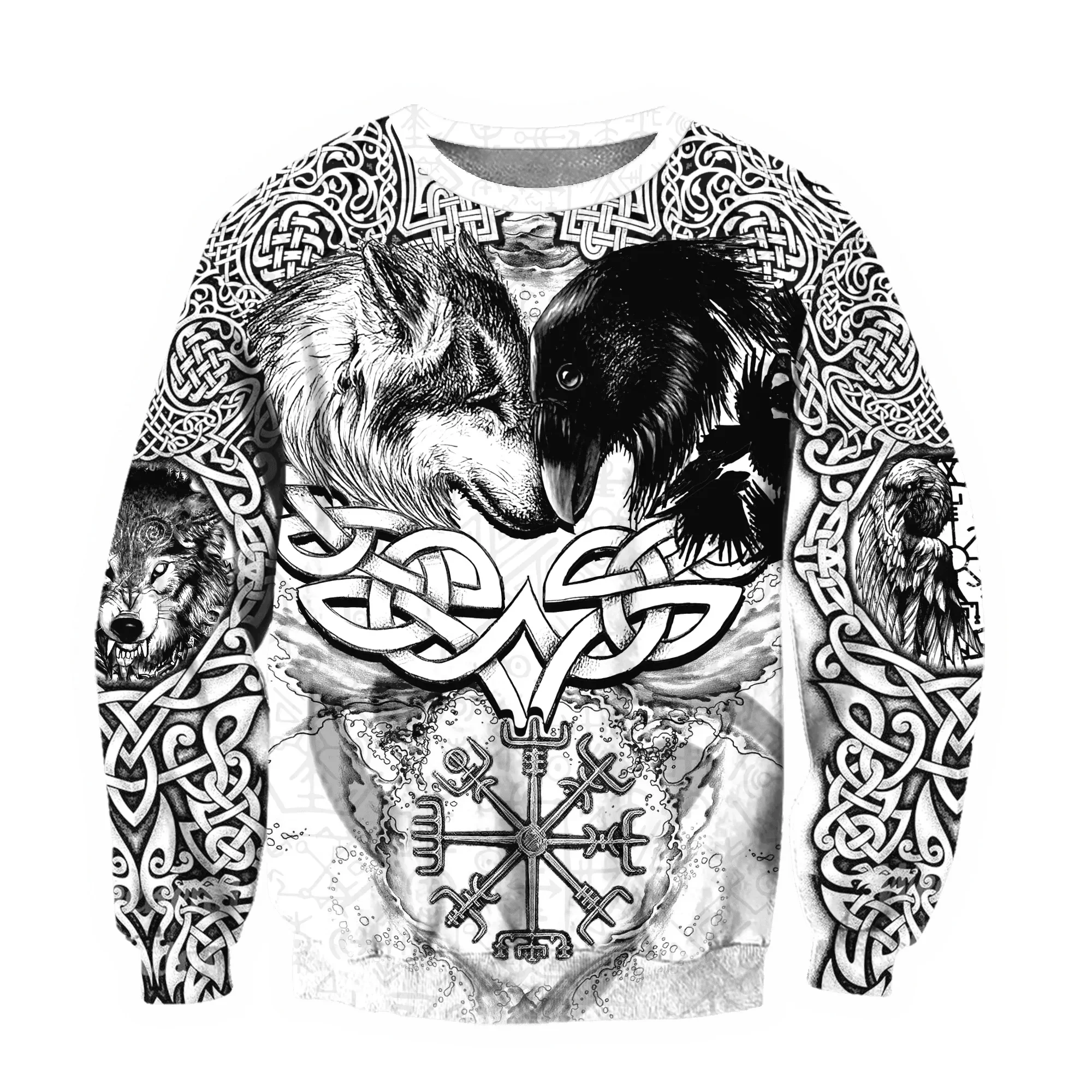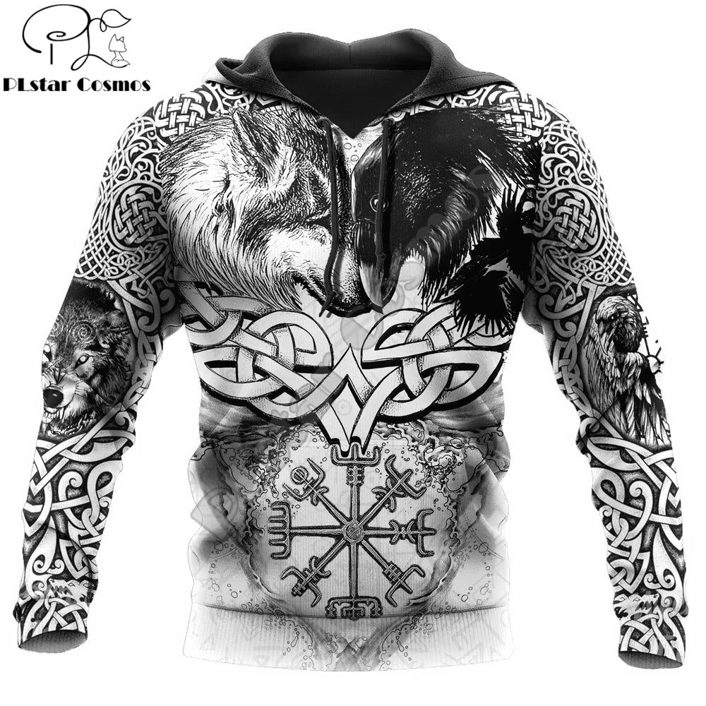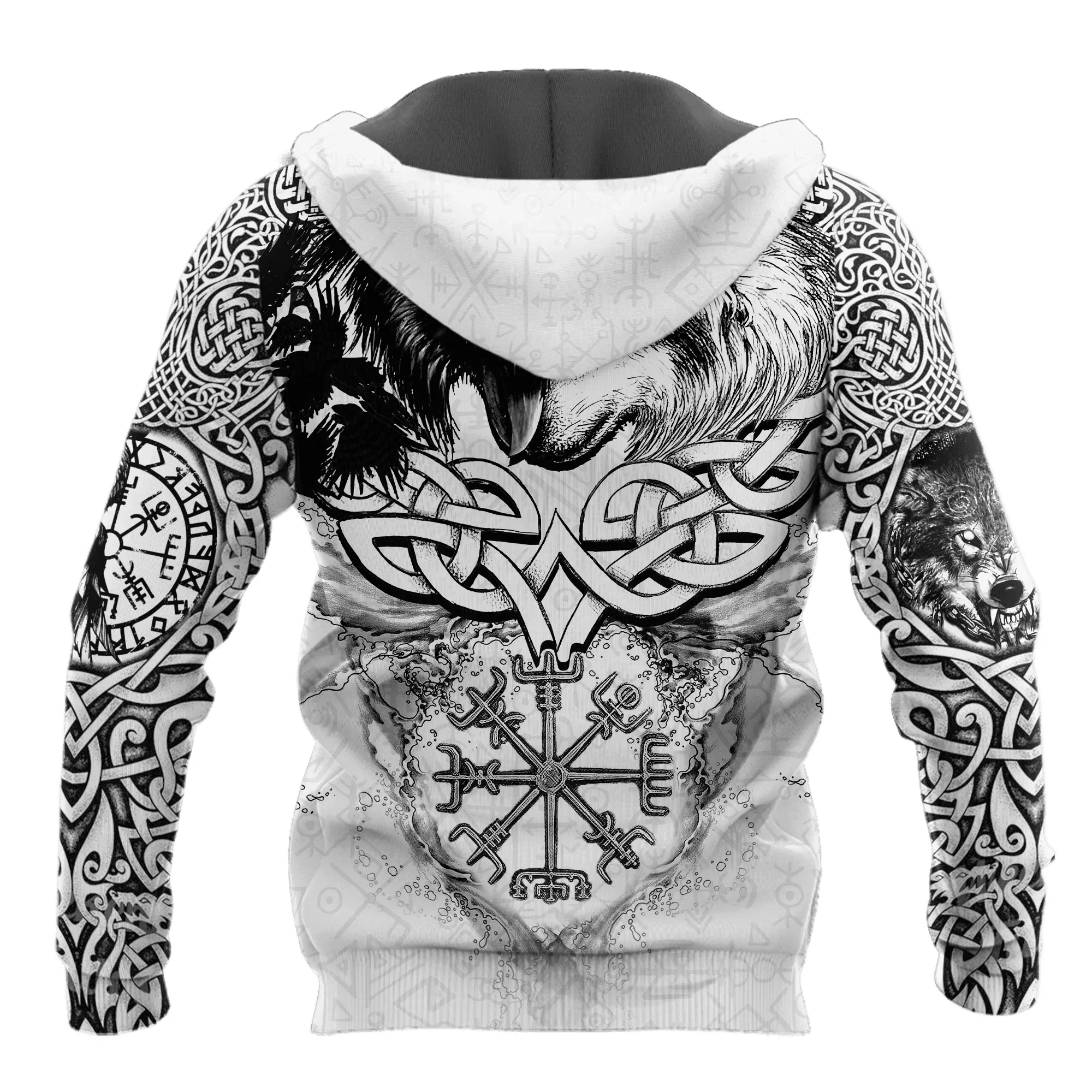 Showcase Norse mythology in bold style with this 3D all-over printed hoodie featuring the Wolf, Odin, Raven, and Compass (Vegvisir) tattoo designs — perfect for autumn streetwear and casual sportswear.
