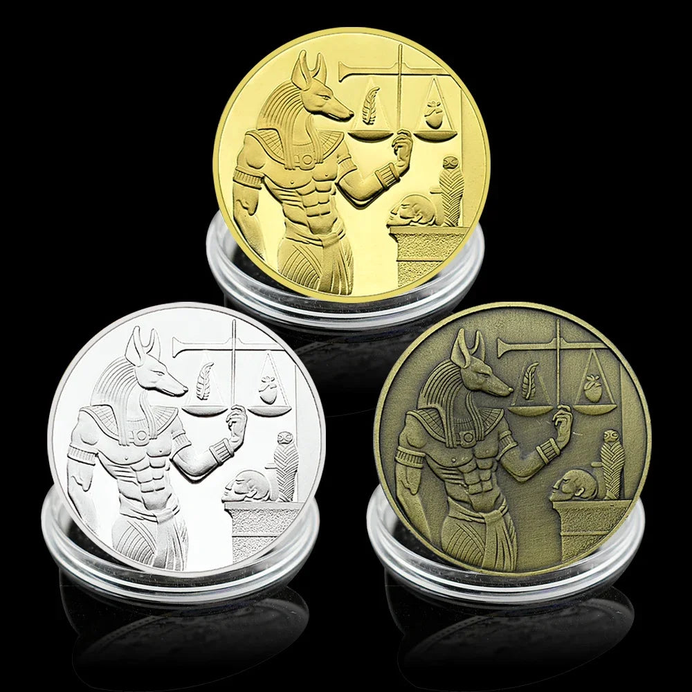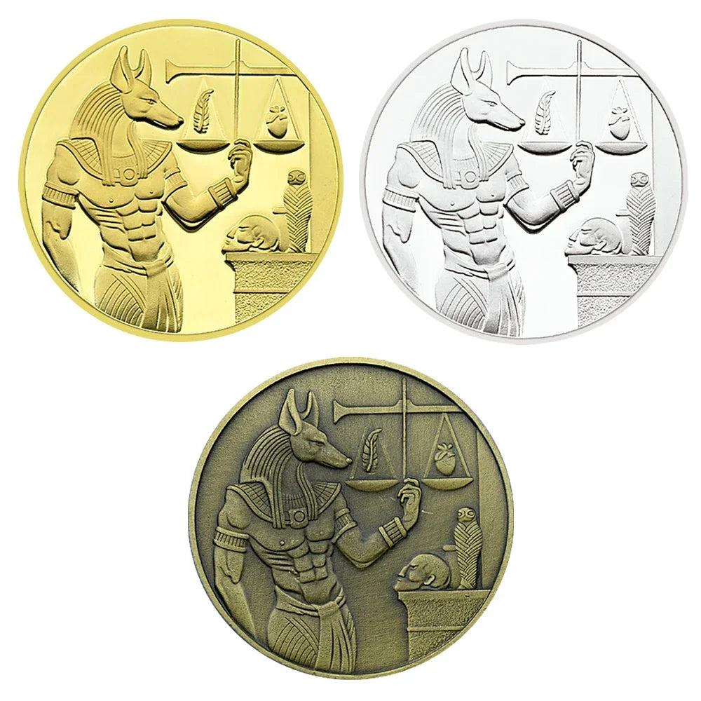Ancient Egypt Pyramid & Anubis Coin Set – 3pcs Commemorative Challenge Coins