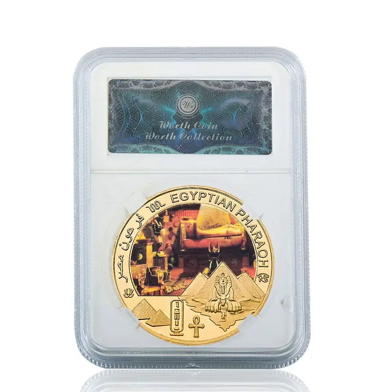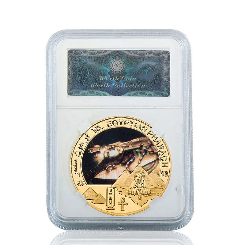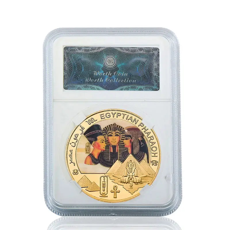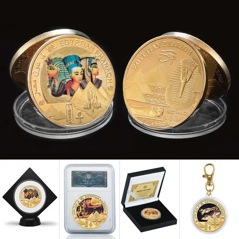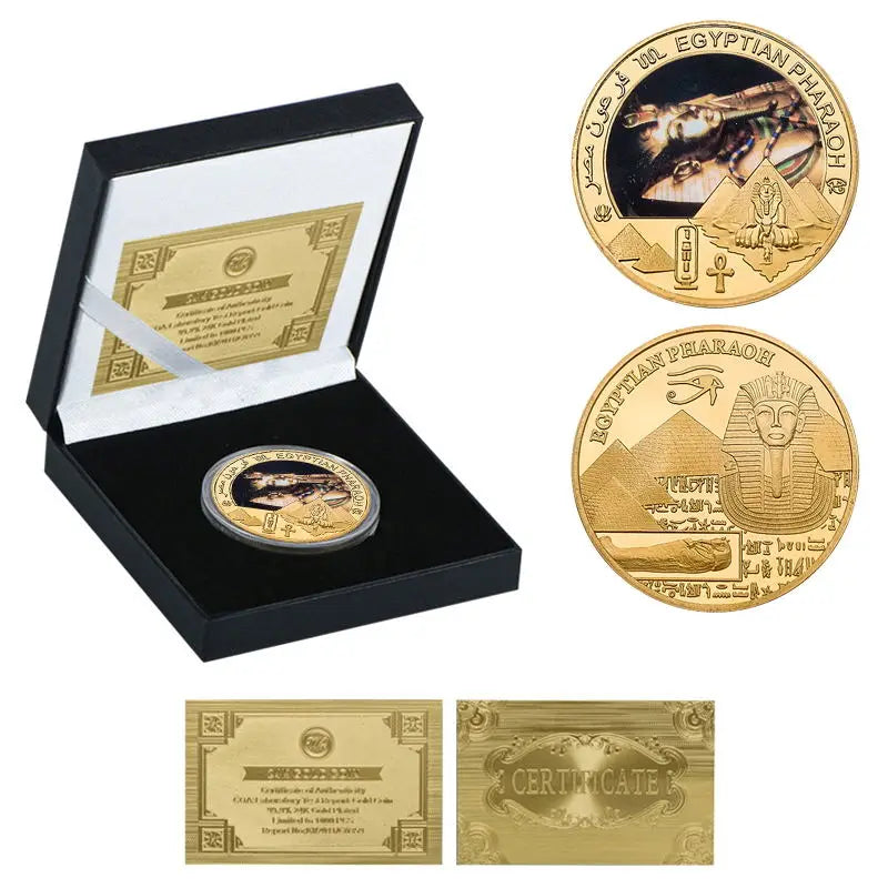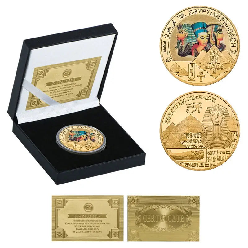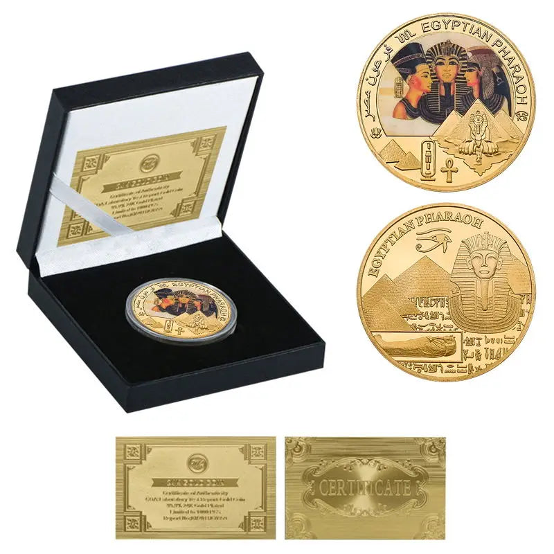 Celebrate the majesty of ancient Egypt with this gold-plated Pharaoh coin — a stunning commemorative piece perfect for collectors, home décor, or thoughtful gifting.
