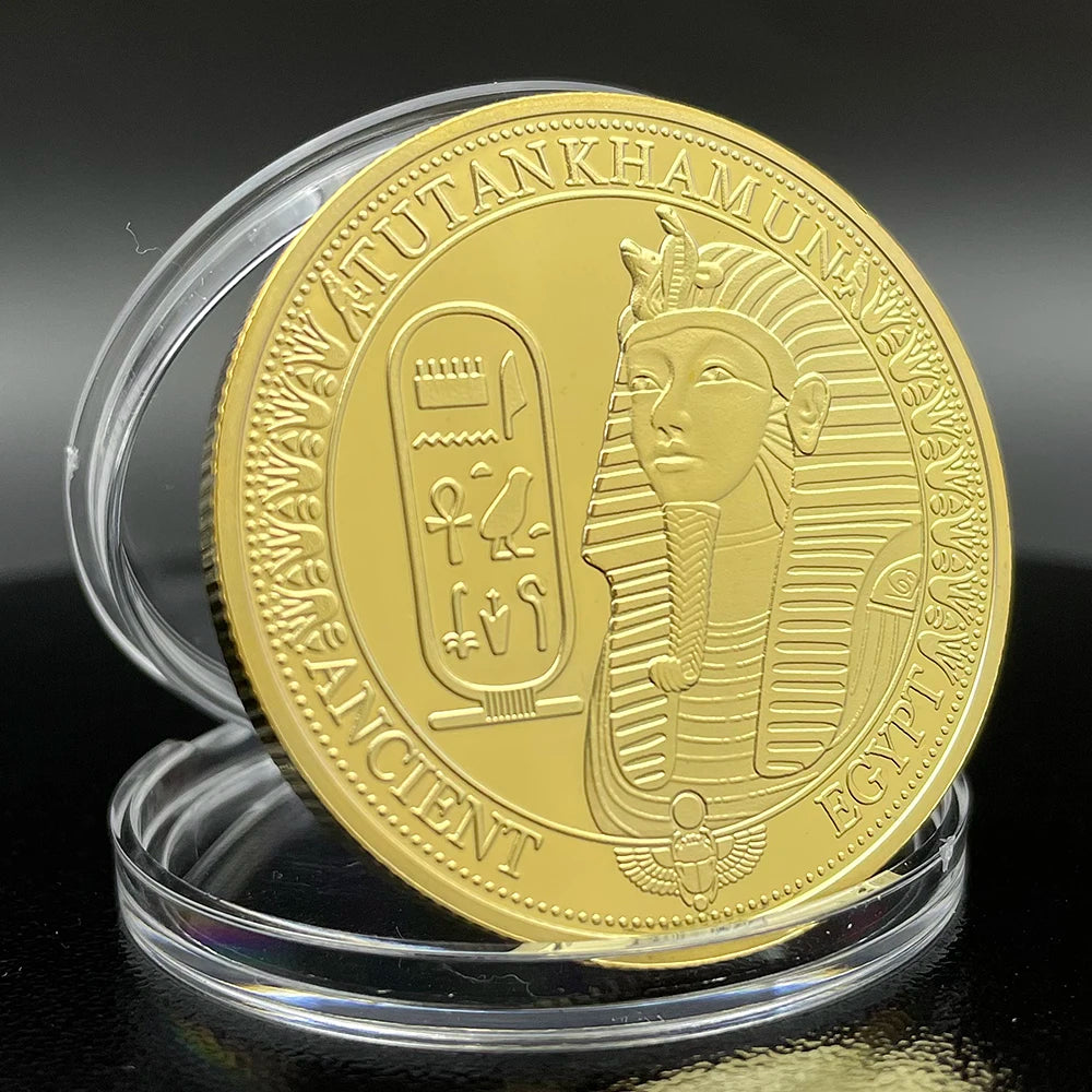 Celebrate the legacy of ancient Egyptian royalty with this Tutankhamun Gold-Plated Commemorative Coin — a striking tribute to the boy king and the grandeur of the pyramids.