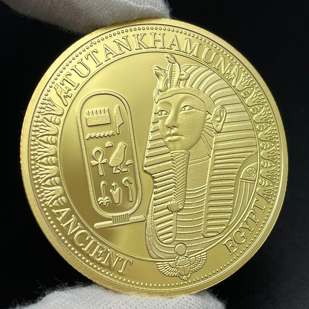 Front side features Pharaoh Tutankhamun with hieroglyphic and royal motifs
