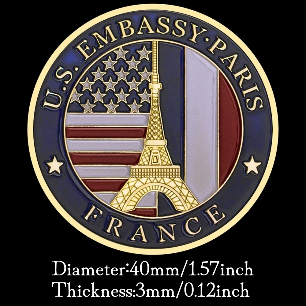 Celebrate international diplomacy with this gold-plated U.S. Department of State Commemorative Coin featuring the Paris Embassy and iconic Eiffel Tower — a symbol of global connection and American presence abroad.