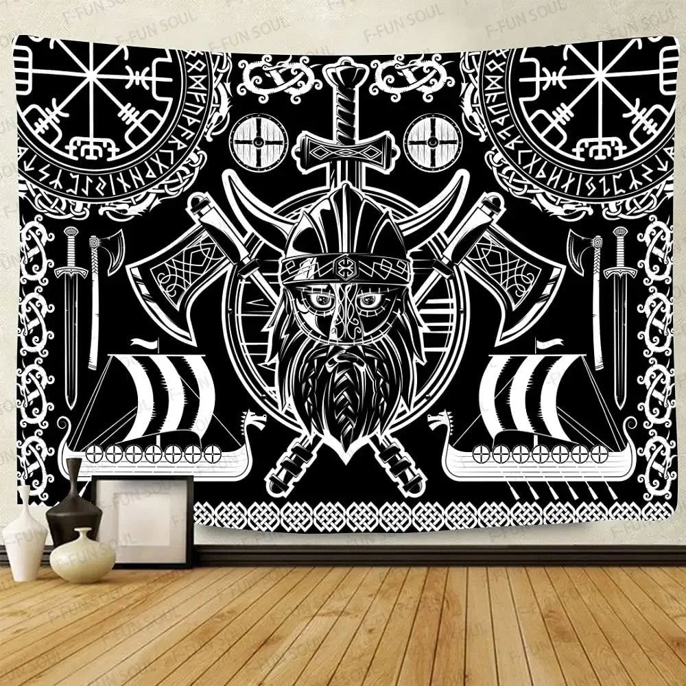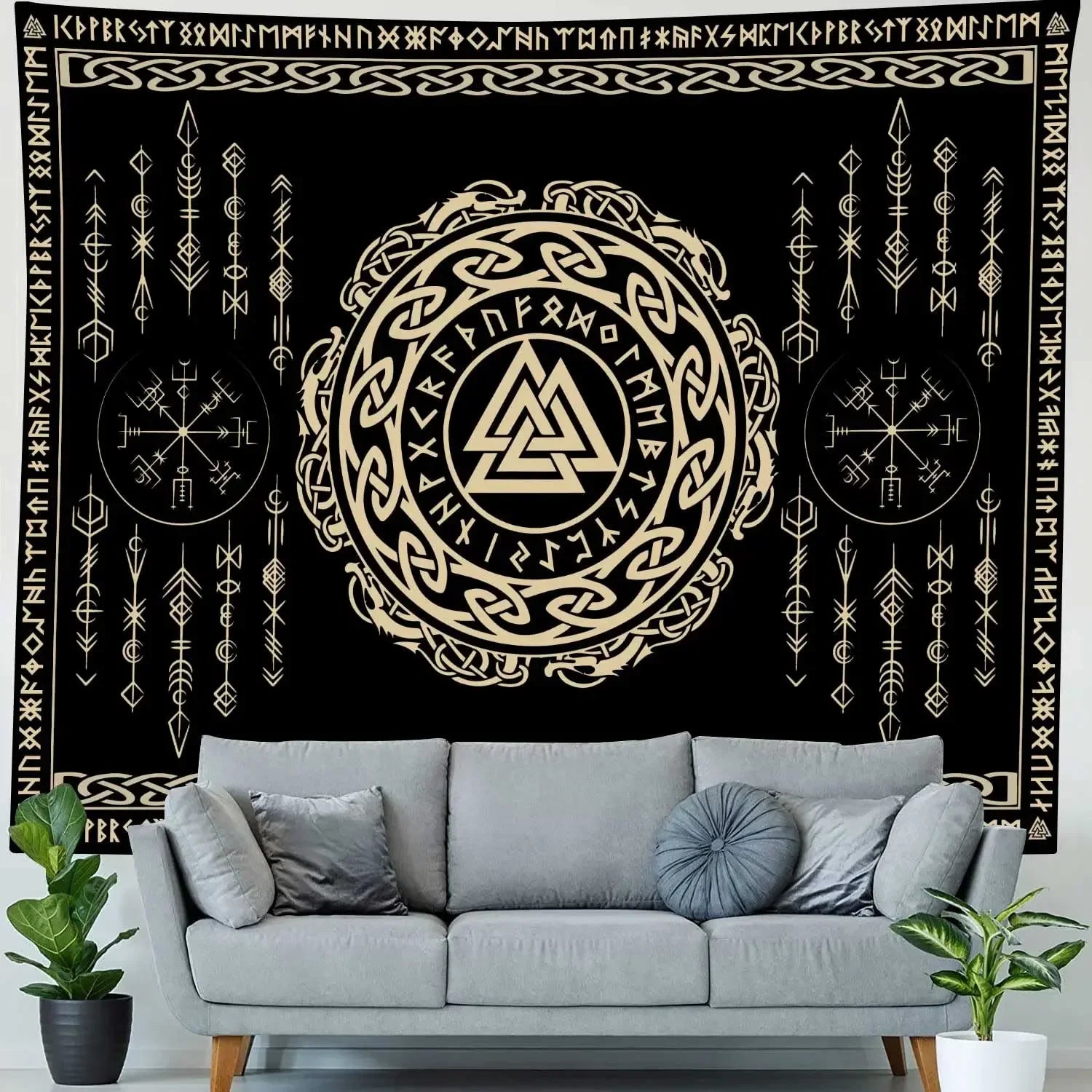 Elevate your space with this unique tapestry blending Viking runes and Greek mythology. Perfect for meditation, bedroom, living room, or dorm decor, it adds a mystical and aesthetic touch to any environment.