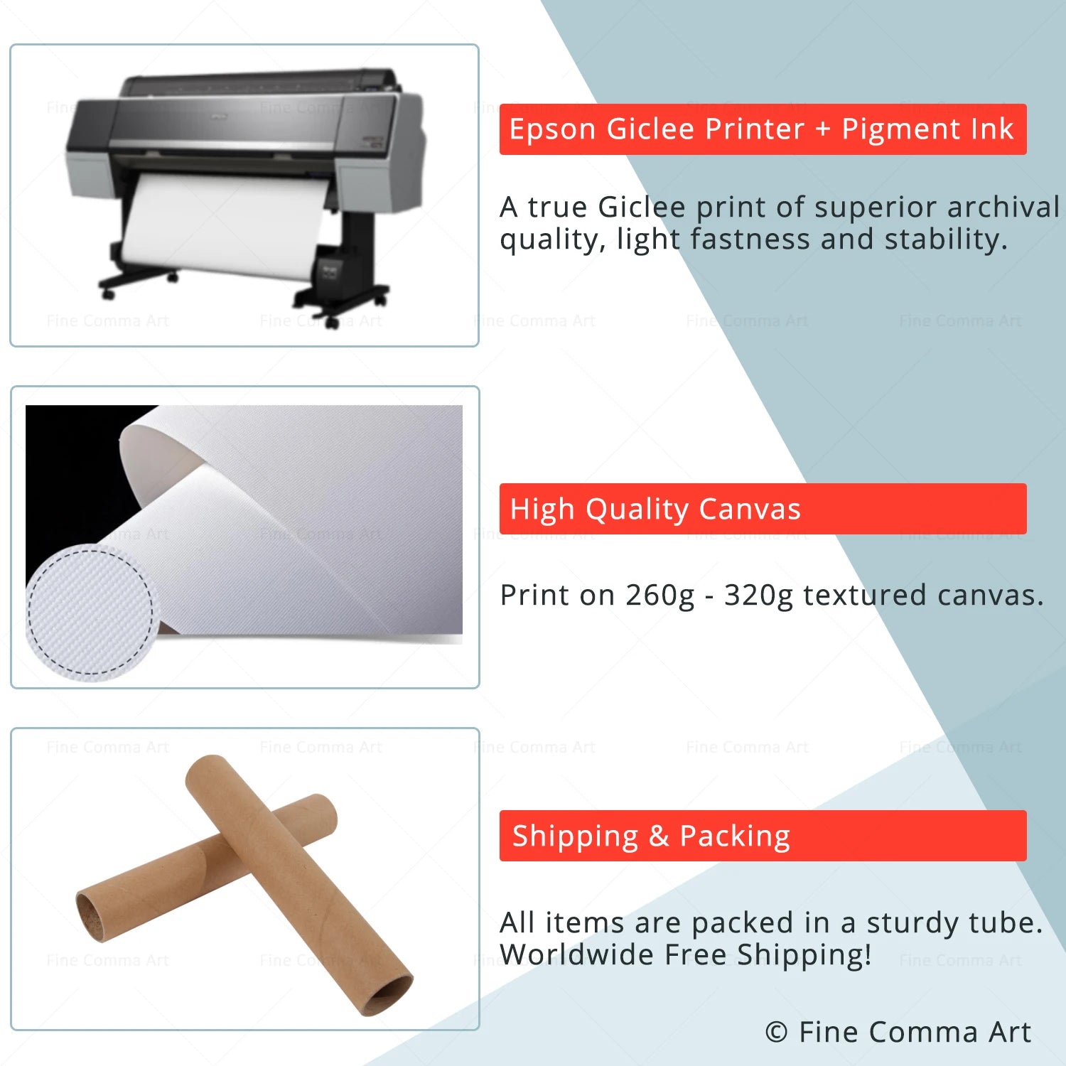 High-quality canvas with vibrant, fade-resistant inks stretched over a sturdy frame.