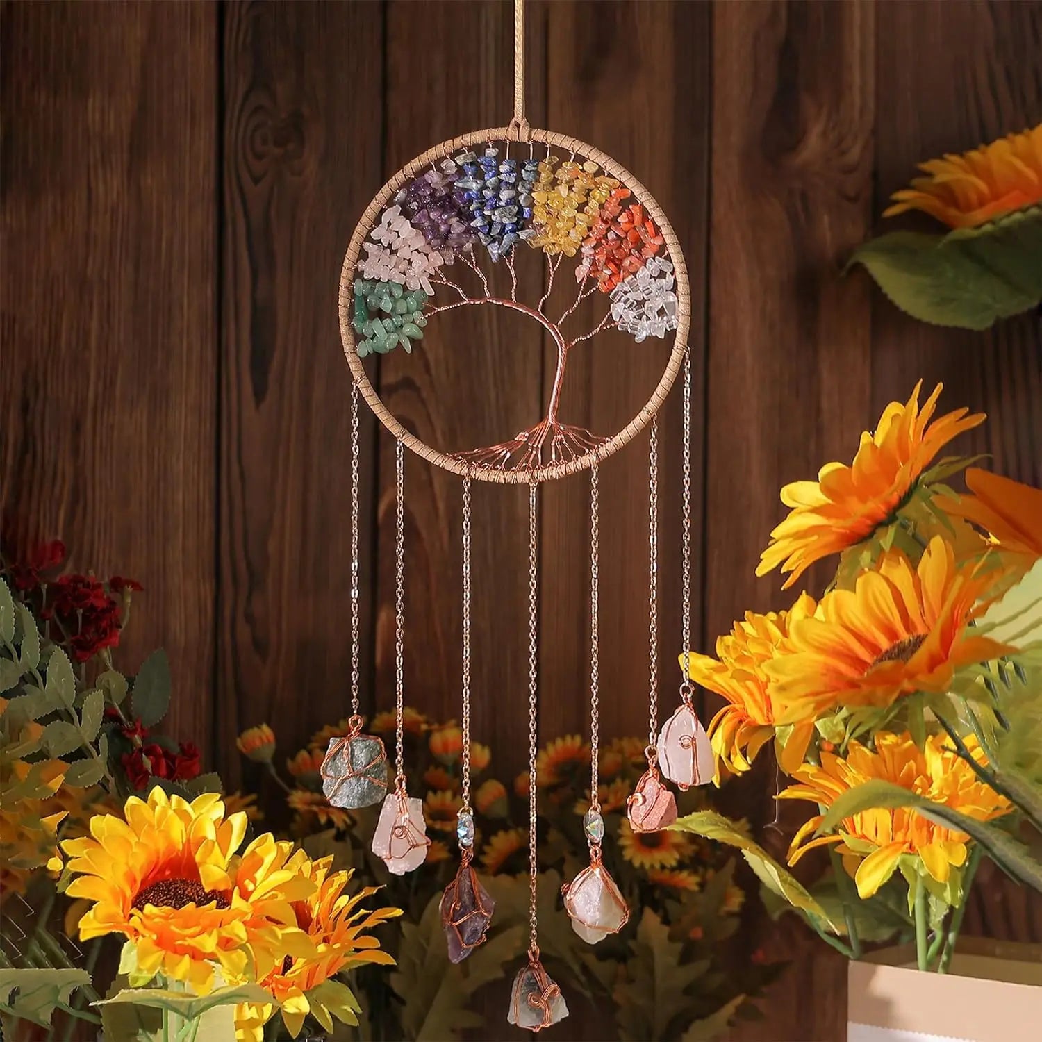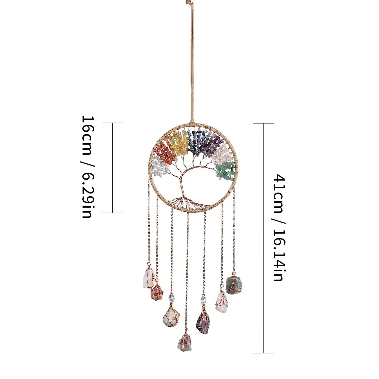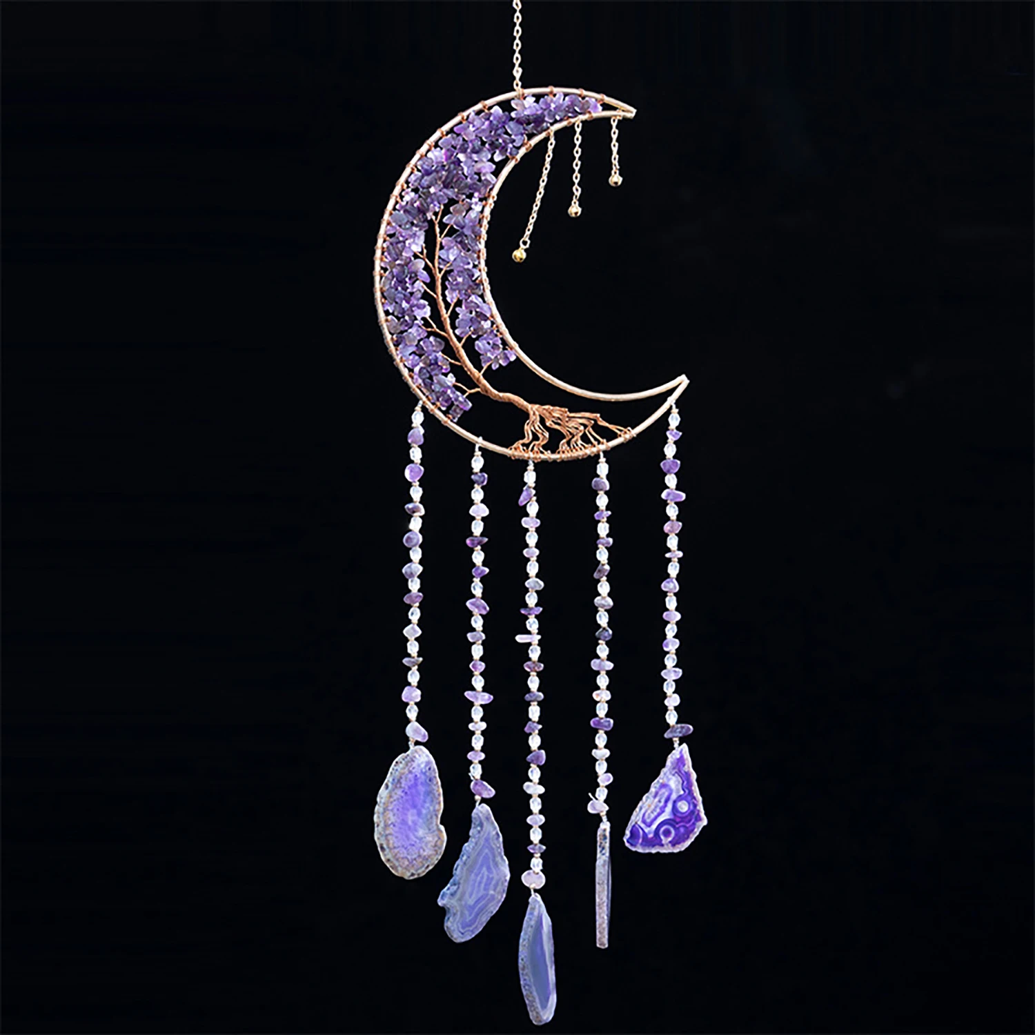 Add a mystical touch to your living space with this handmade Tree of Life dream catcher featuring crystal gravel and a crescent moon design. Perfect for bringing positive energy and elegance to any room.