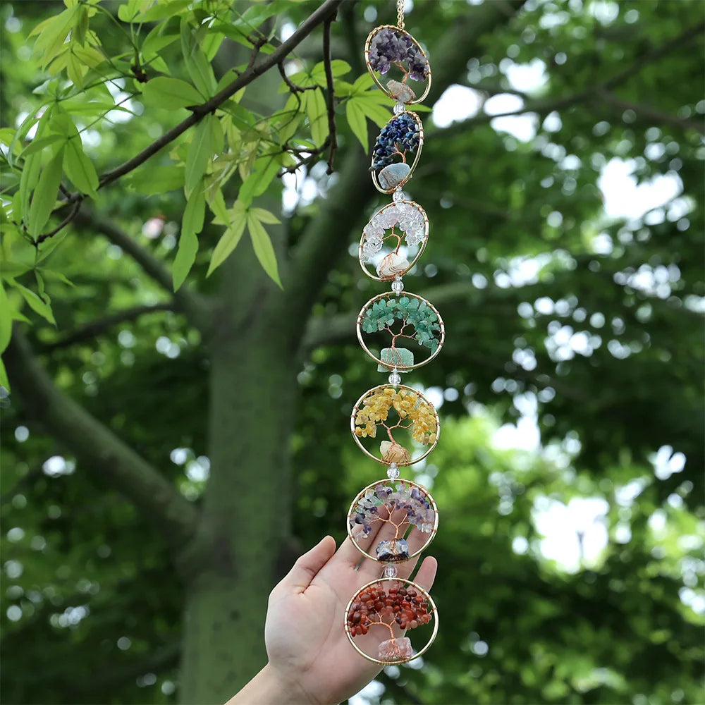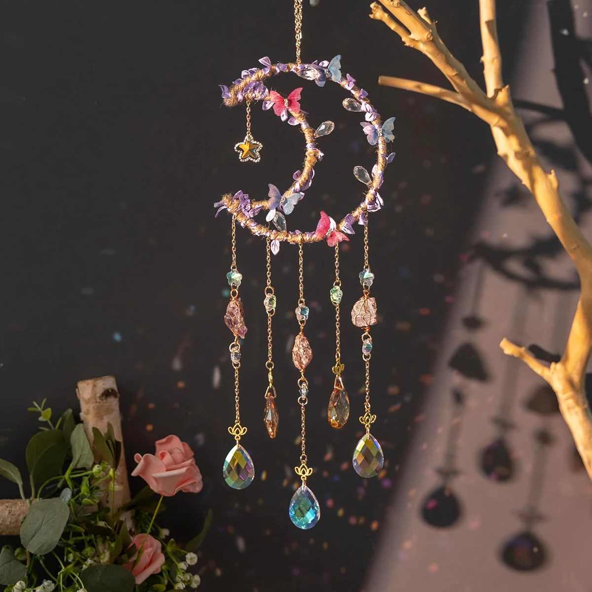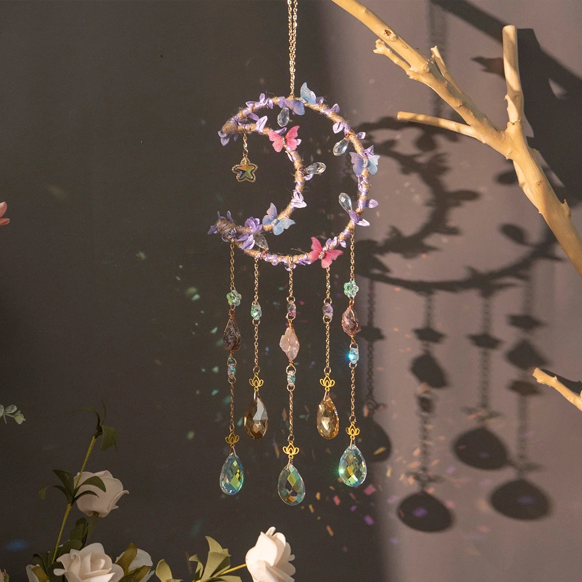 Add a mystical touch to your living space with this handmade Tree of Life dream catcher featuring crystal gravel and a crescent moon design. Perfect for bringing positive energy and elegance to any room.
