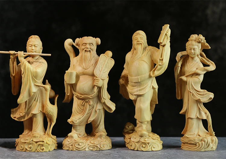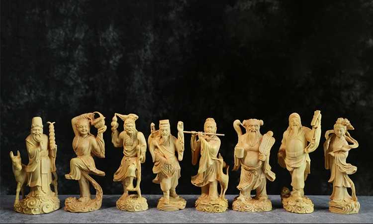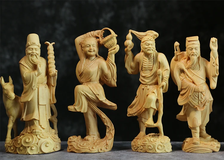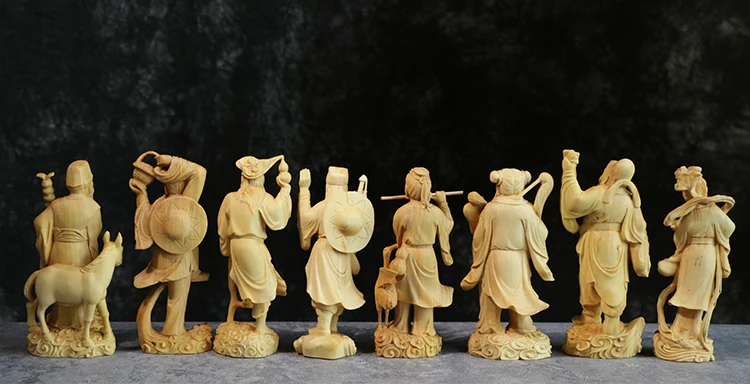 Exquisite Hand-Carved Wooden Eight Immortals Set – Daoist Longevity Figurines (8pcs)