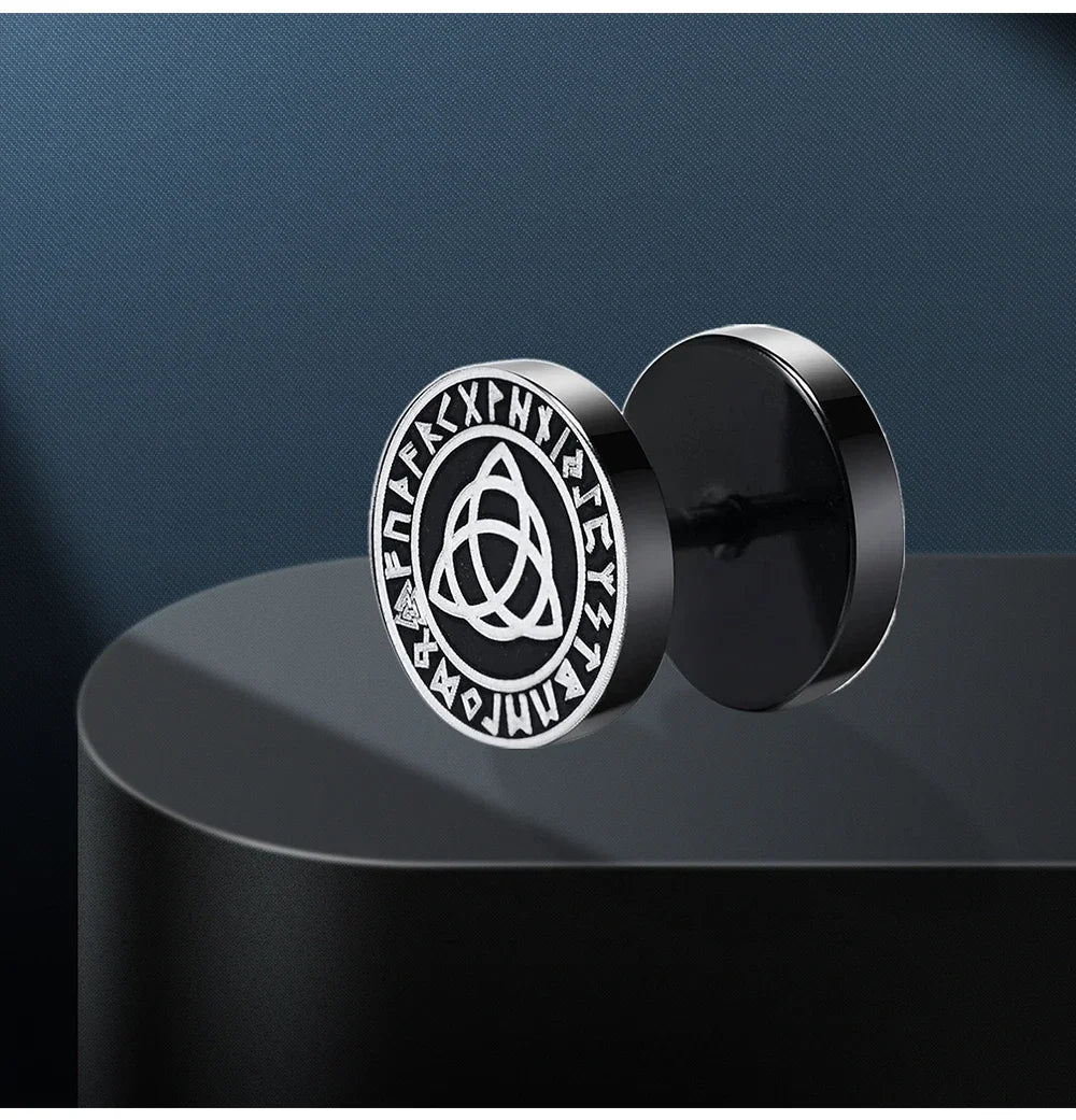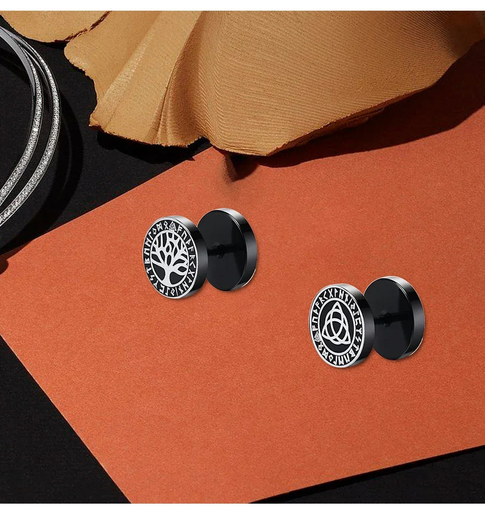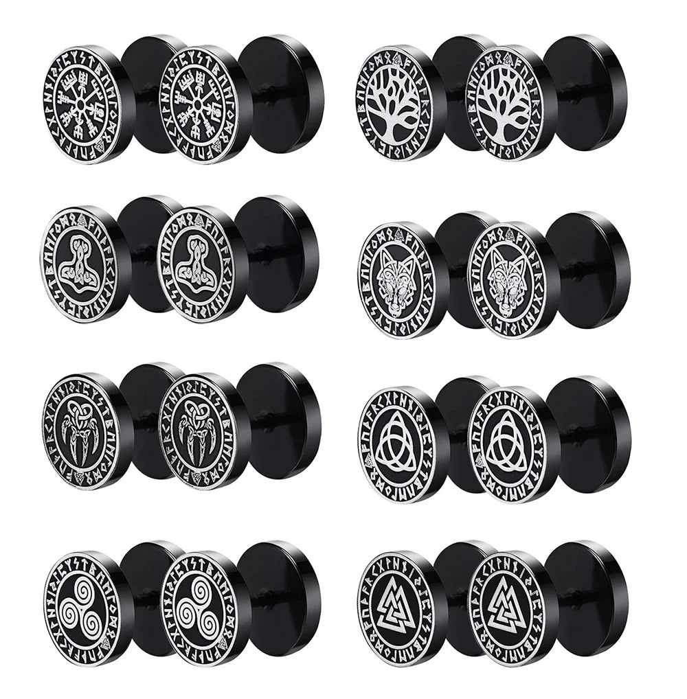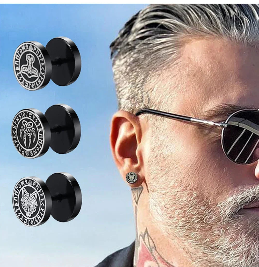 Show off your fierce style with these Gothic Norse Viking rune stud earrings — featuring powerful Valknut, wolf head, compass, and Celtic knot motifs crafted from durable stainless steel, perfect for men and boys with a punk edge.