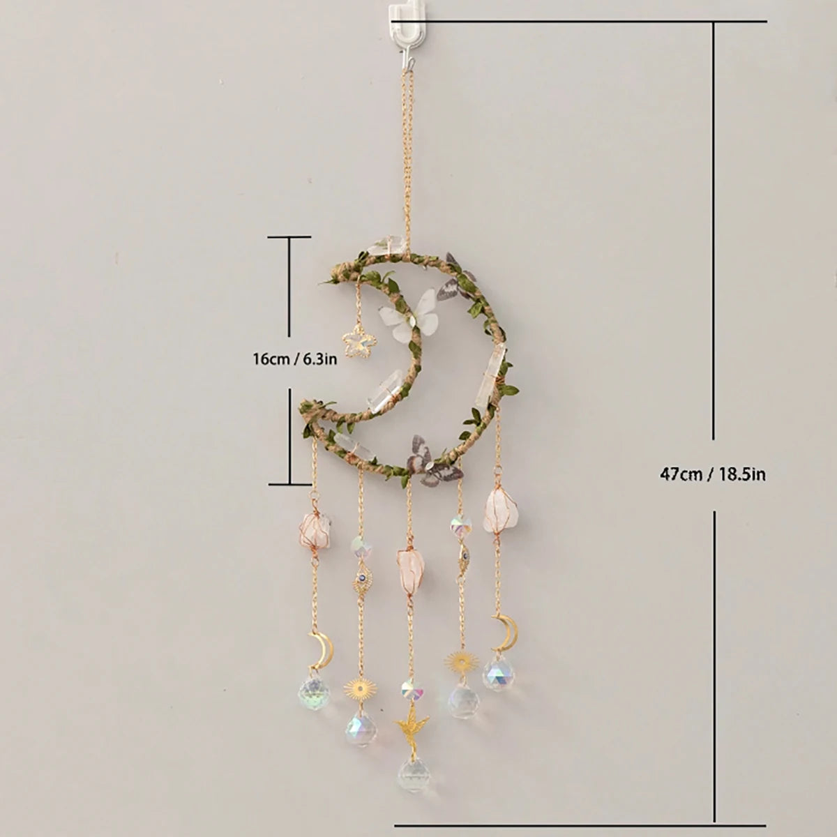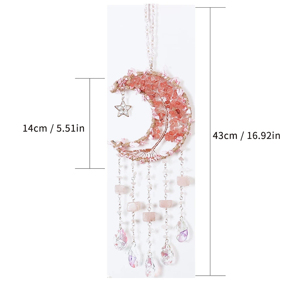 Natural Agate Dream Catcher Wall Hanging – Moon, Star & Sun Crystal Stone Decor for Garden & Bedroom