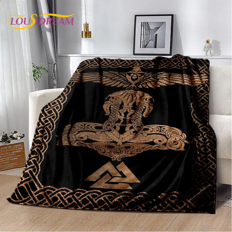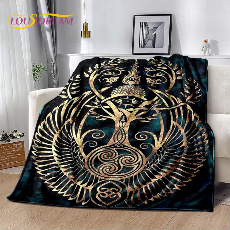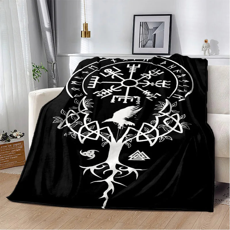 Viking Tree of Life Plush Blanket – Norse Mythology Flannel Throw for Home Decor